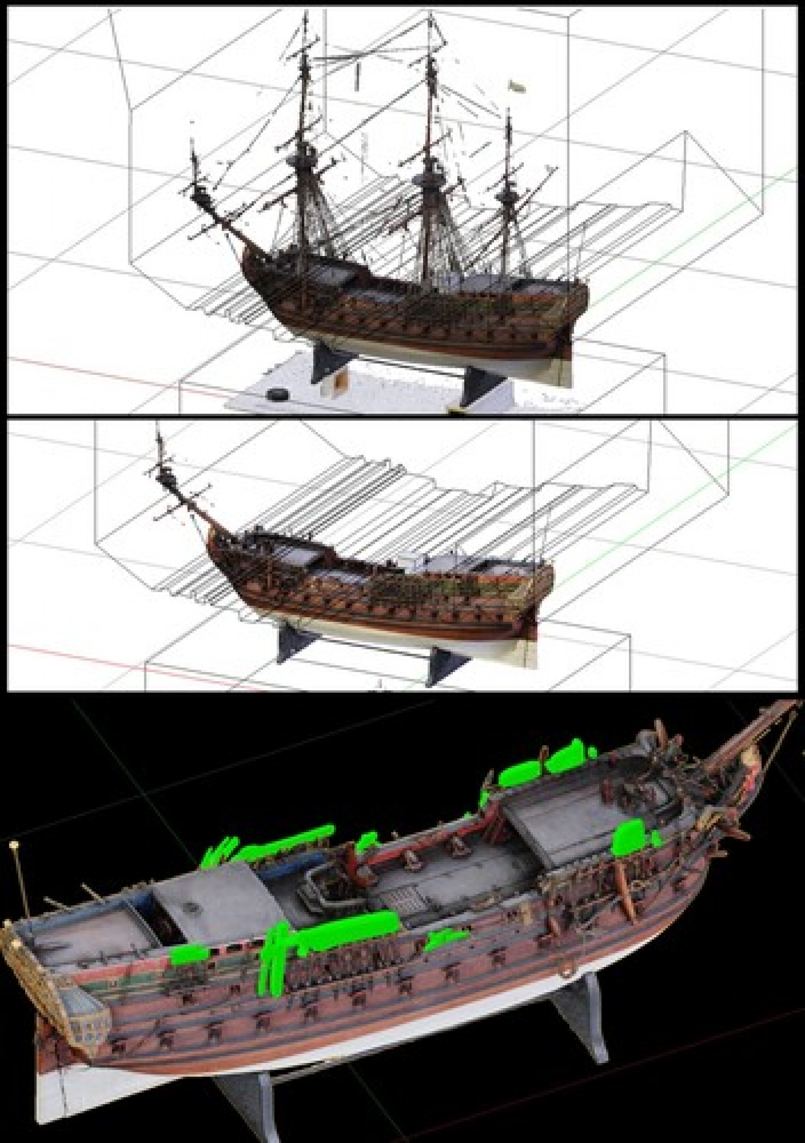 이처럼 3D 자료를 축적하면 배의 일부가 부서져 사라진 난파선의 구조 분석이라든지 다양한 용도로 활용할 수 있습니다.