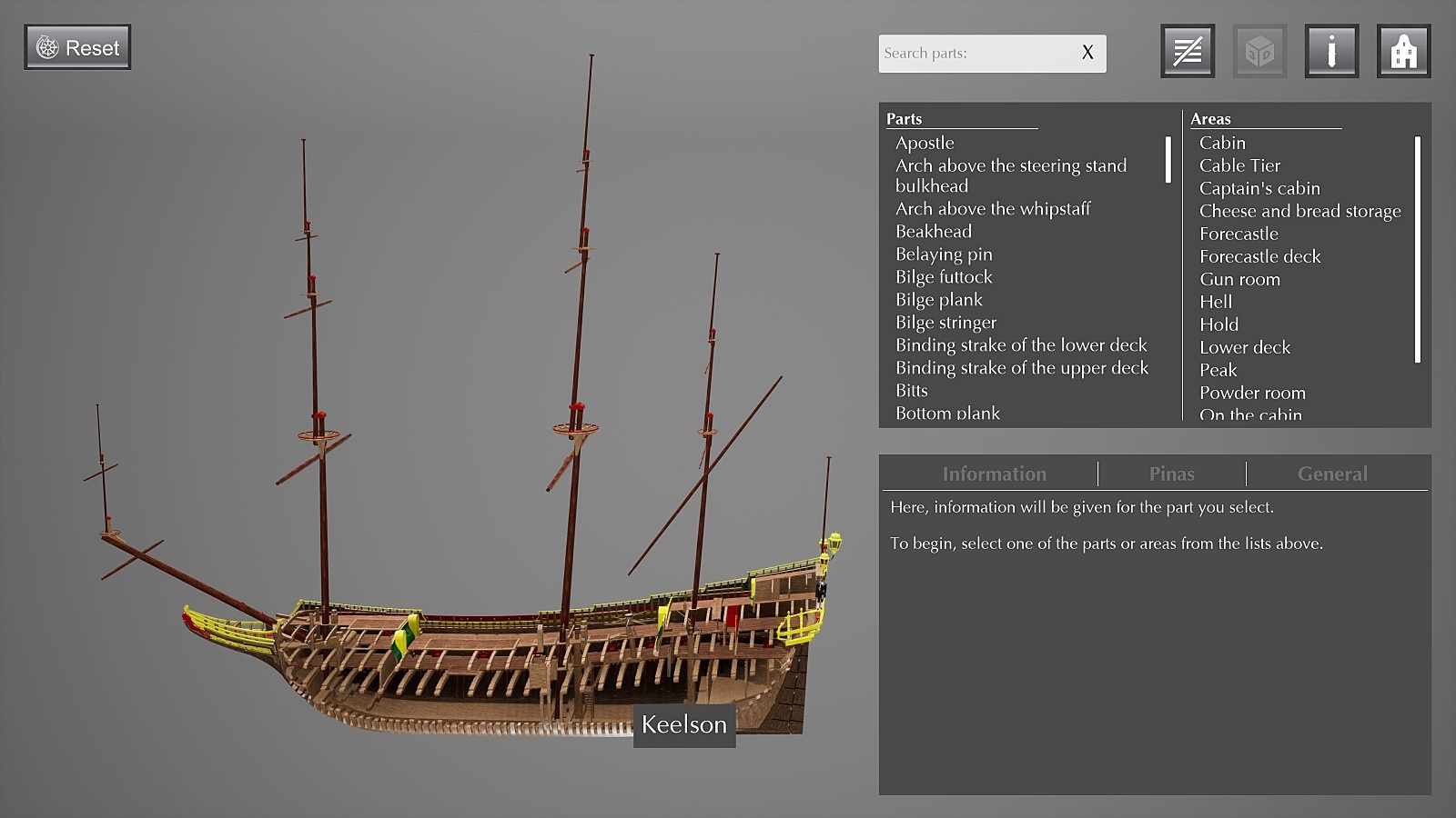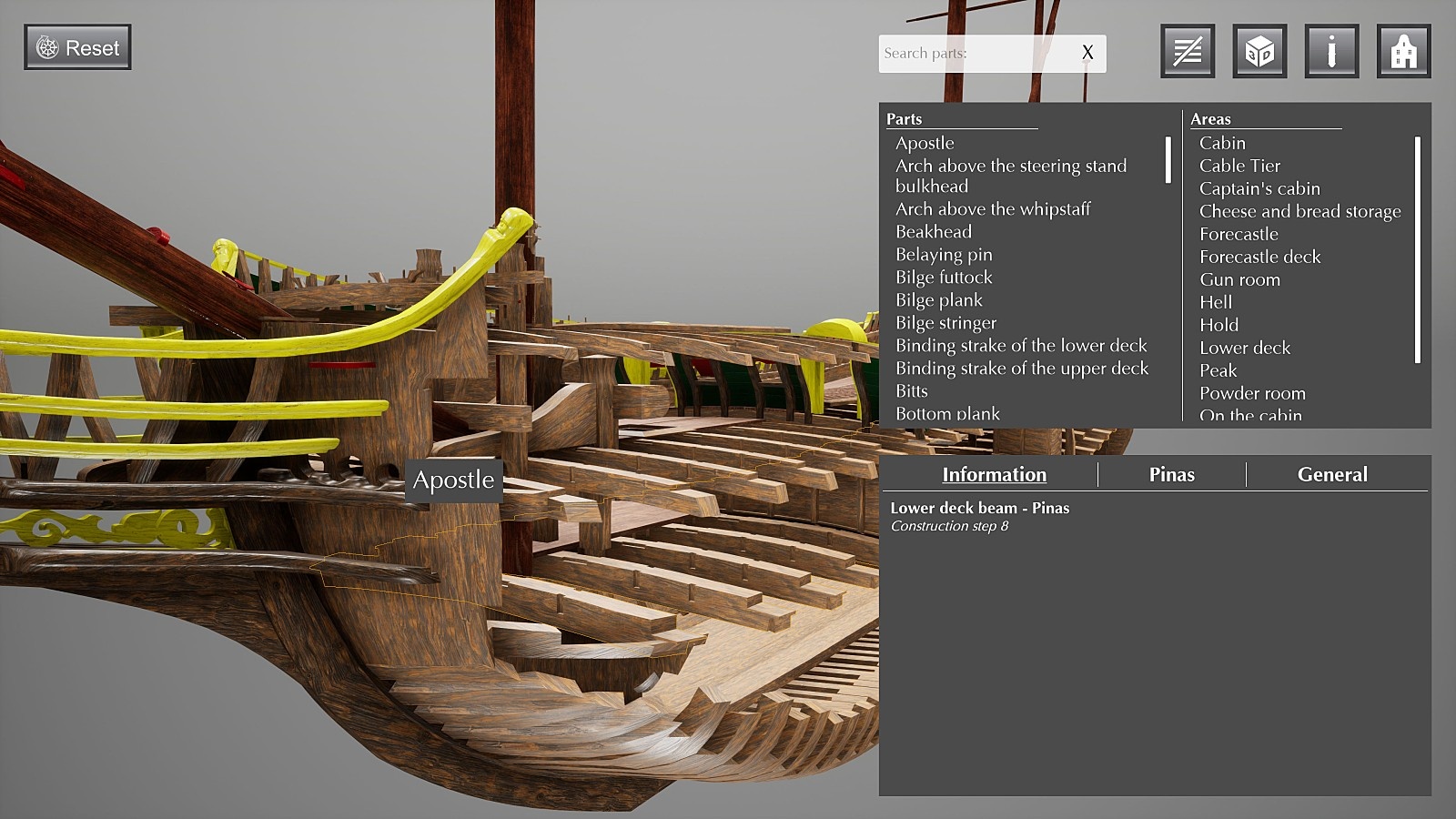 용어사전은 물론, 내부 구조를 펼쳐서 분해해볼 수 있고 게임처럼 배 위를 걸어다니면서 투어링도 할 수 있습니다.