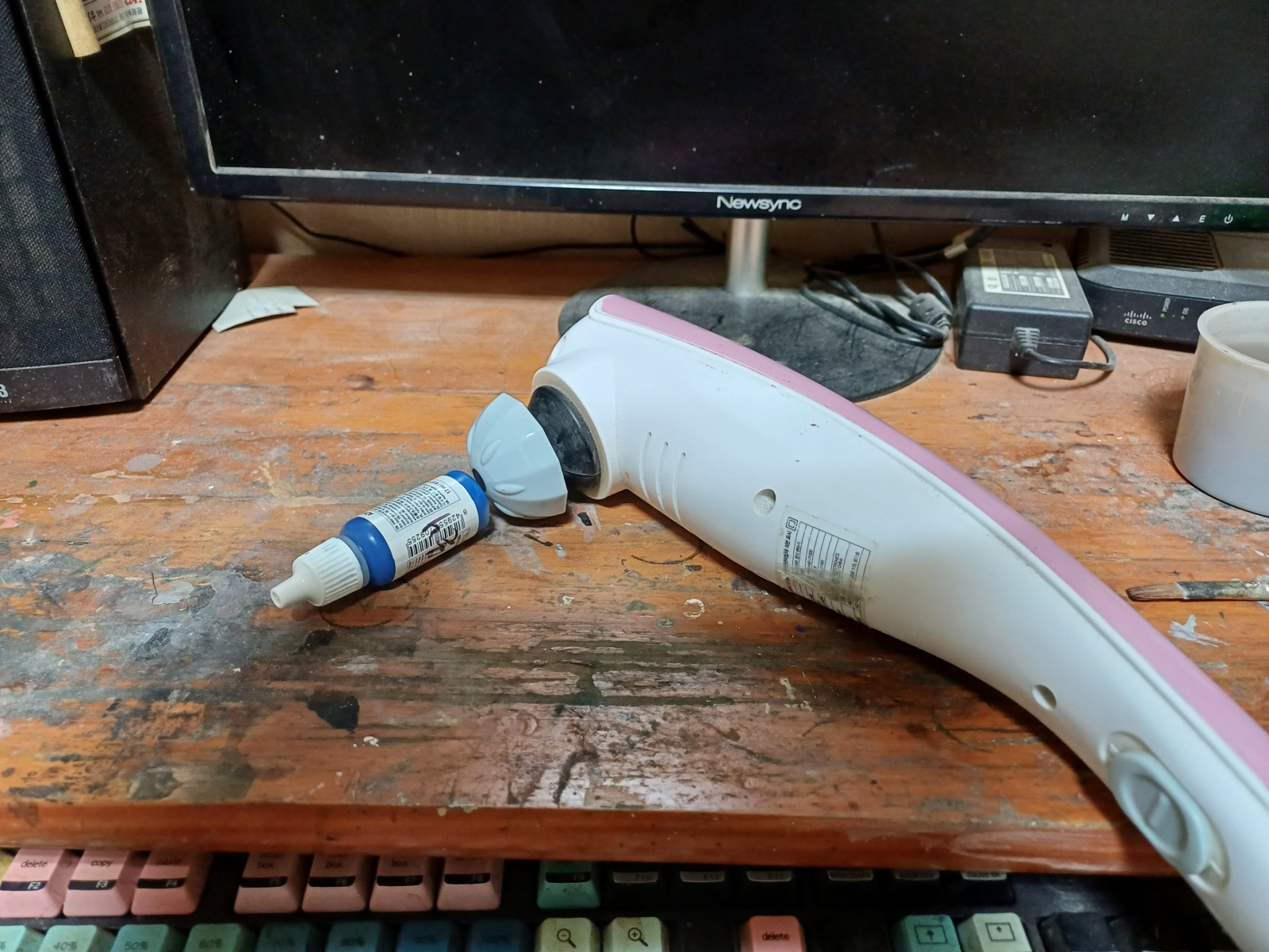 몇해전에 2만원대로 산 안마기에요. 아크릴 물감 및으로 안마해주면은 좋습니다. 모터도 쌔고..