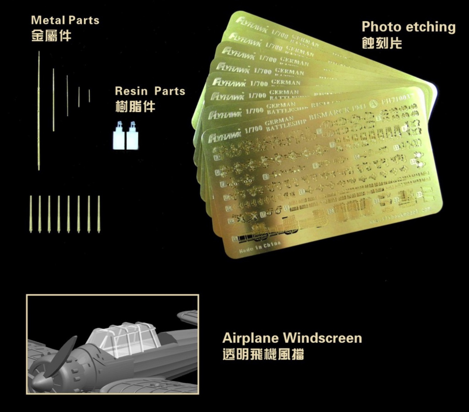 * 황동포신에 황동 마스트에 필요한 에칭이 다량 포함.. 대신 비스마르크보다 에칭이 적네요 황동 부품들에 올인한 키트인 듯