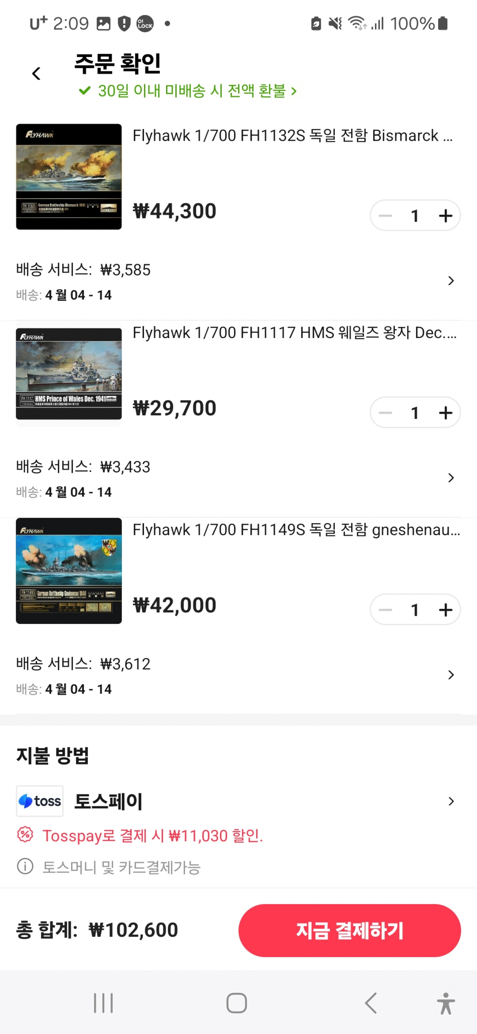 * 필자의 최종 결제가 = 디럭스 에디션 2개 포함 3개 키트 총 7만원 정도.. "알리할인+토스할인+노는 토스포인트" 사용