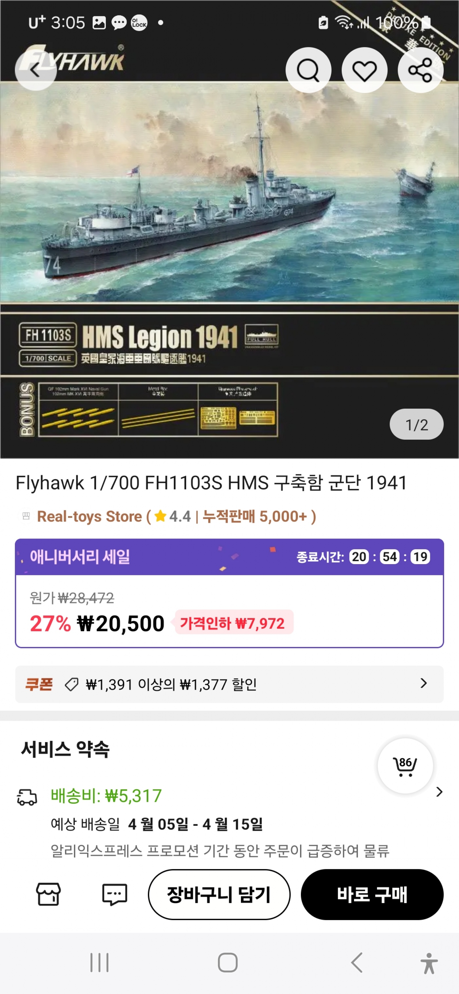 * 상기 주문품은 아니고 다른 키트지만 플라이호크 정밀 함선 일반판이 딱 만원이면 정말 싸네요 ㄷㄷ (할인 전 가격임!)