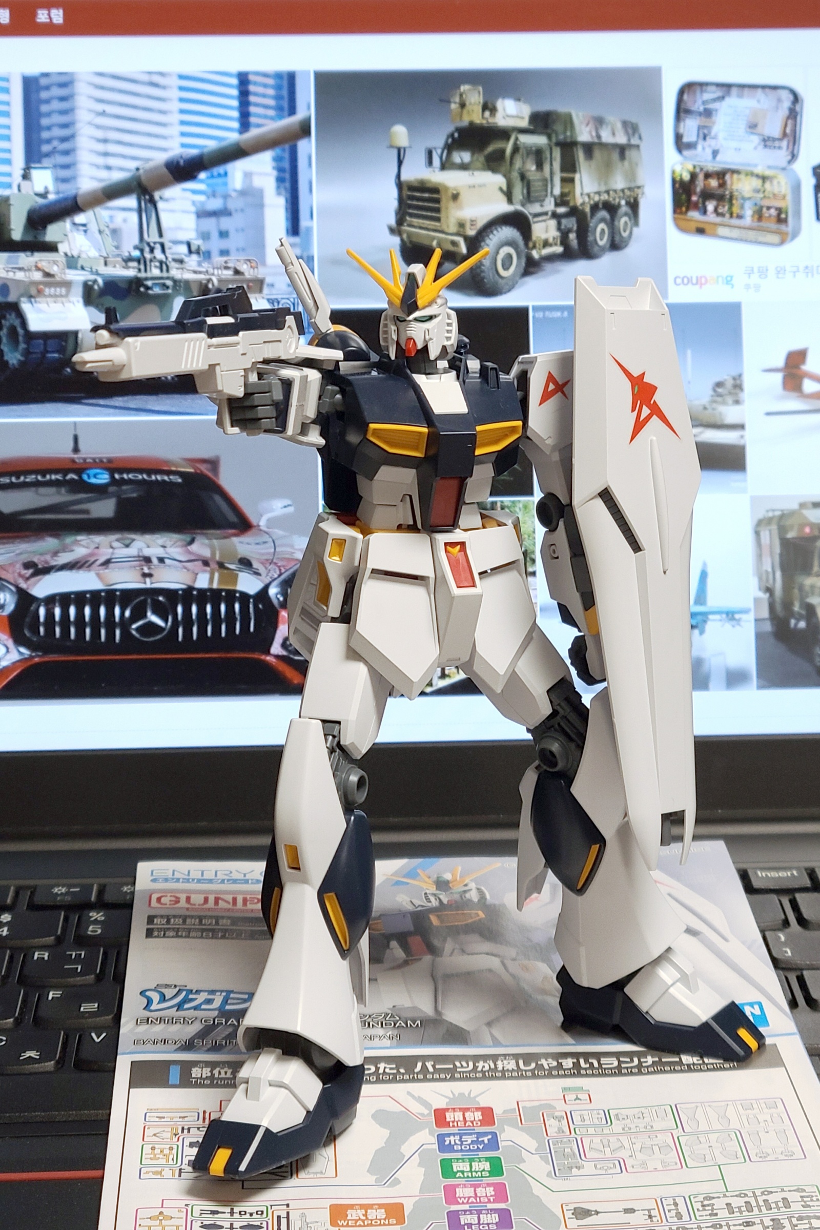 1/144 스케일 Entry Grade인데 파트 색상 구분도 잘되어있고 접착제 필요없이 부품 조립도 완벽해 스트레스가 없었습니다. 고가 제품도 아닌네 역시 반다이구나라고 또다시 한번 깨달었습니다.