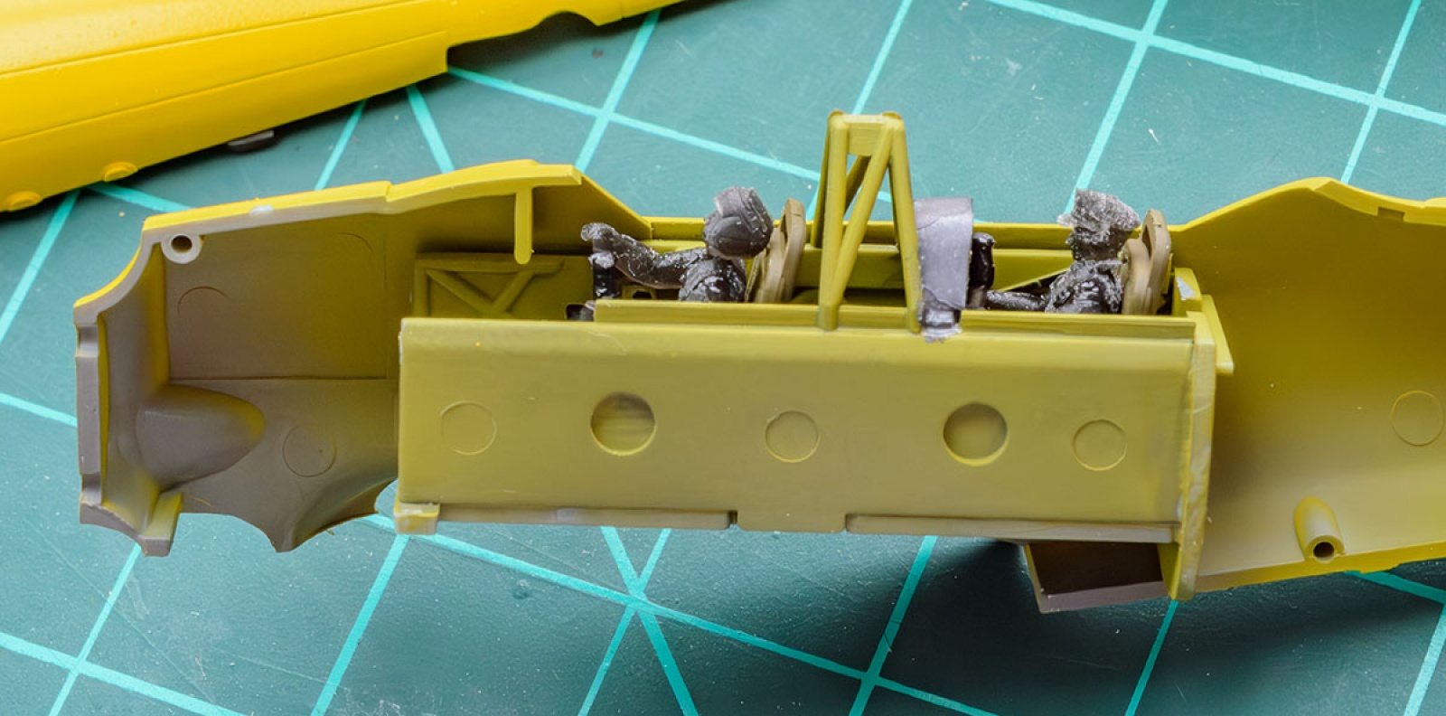오래된 키트라서 파일럿 좌석의 비율 오류 때문일 수 있지만, 그렇다고 비행기 모형을 뜯어고칠 순 없으니 파일럿을 좌석에 맞게 수정해야죠. 가장 작은 모델에서 앉은키 높이만 1/3 가량 늘리면 해결되겠습니다.