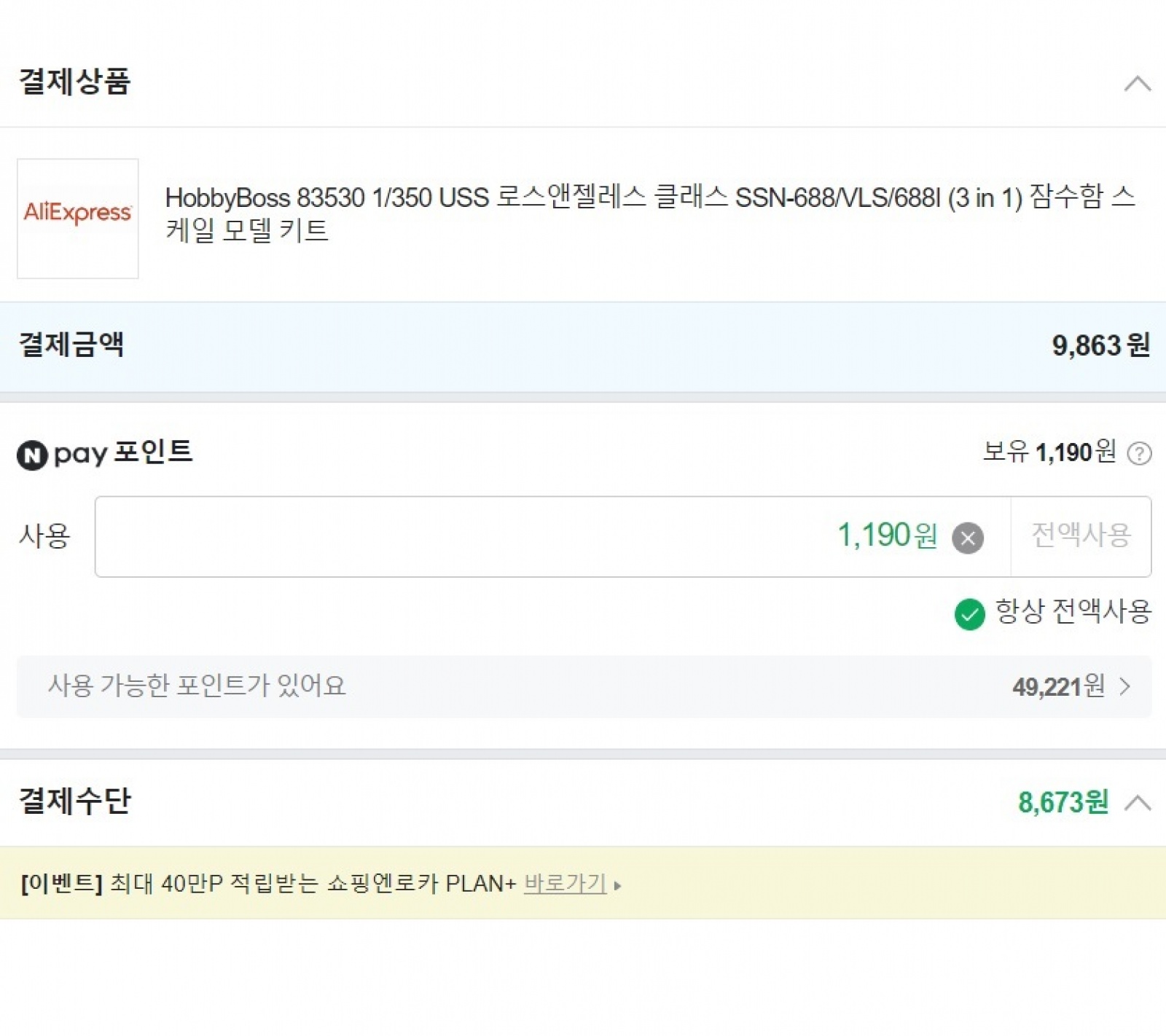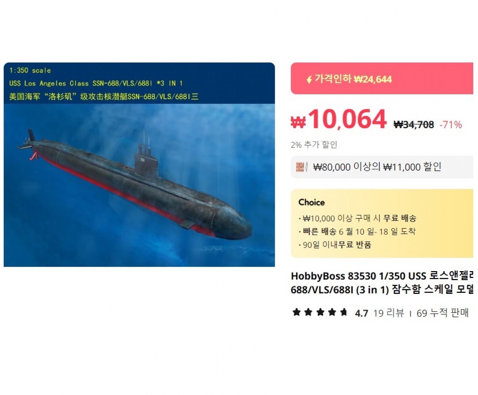이 프라모델 키트도 무료배송이던데 여기에 뭐 코인인가? 뭔가? 할인까지 들어가니 무배 9천원대 가격이고