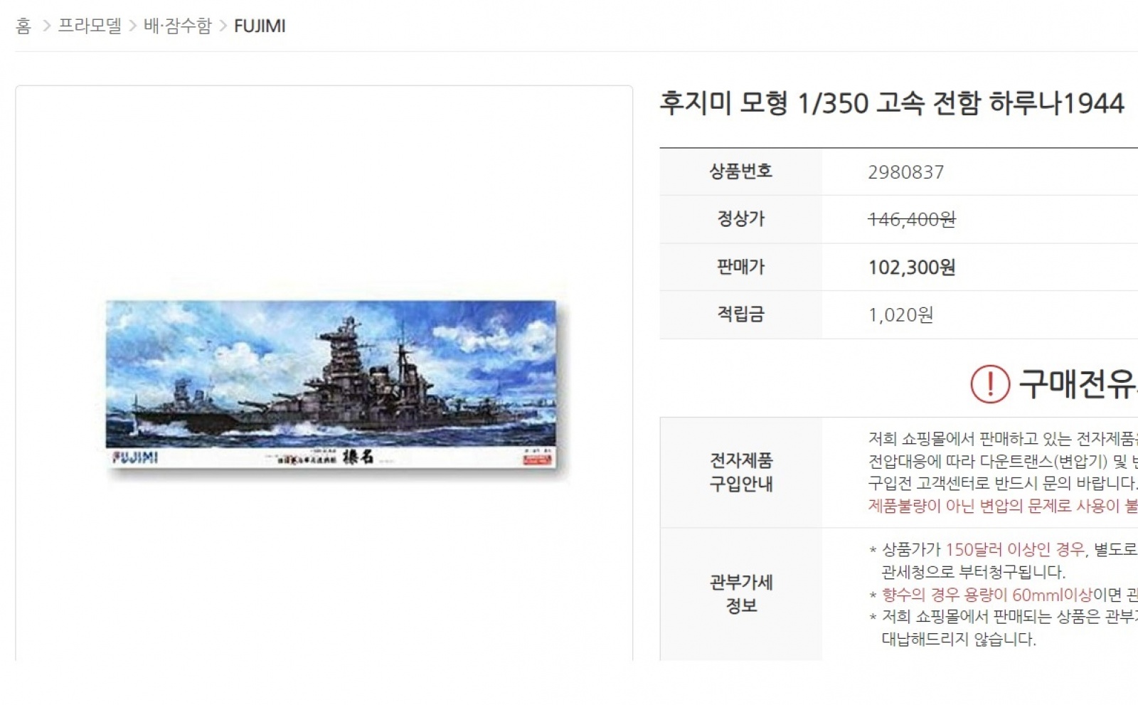 이젠 헷갈리기 까지~ 음.. 후지미 1/350 전함이 10만원이면 사볼만한 가격이 맞는지..?