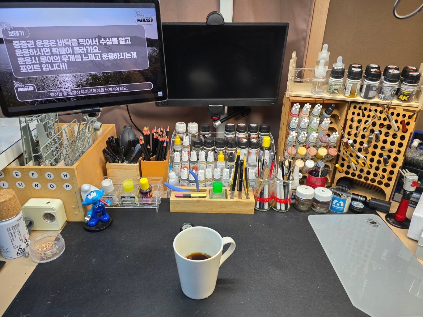치우고 커피 한잔하면서 배스 낚시 영상 보다가 한 컷 찍어봅니다.