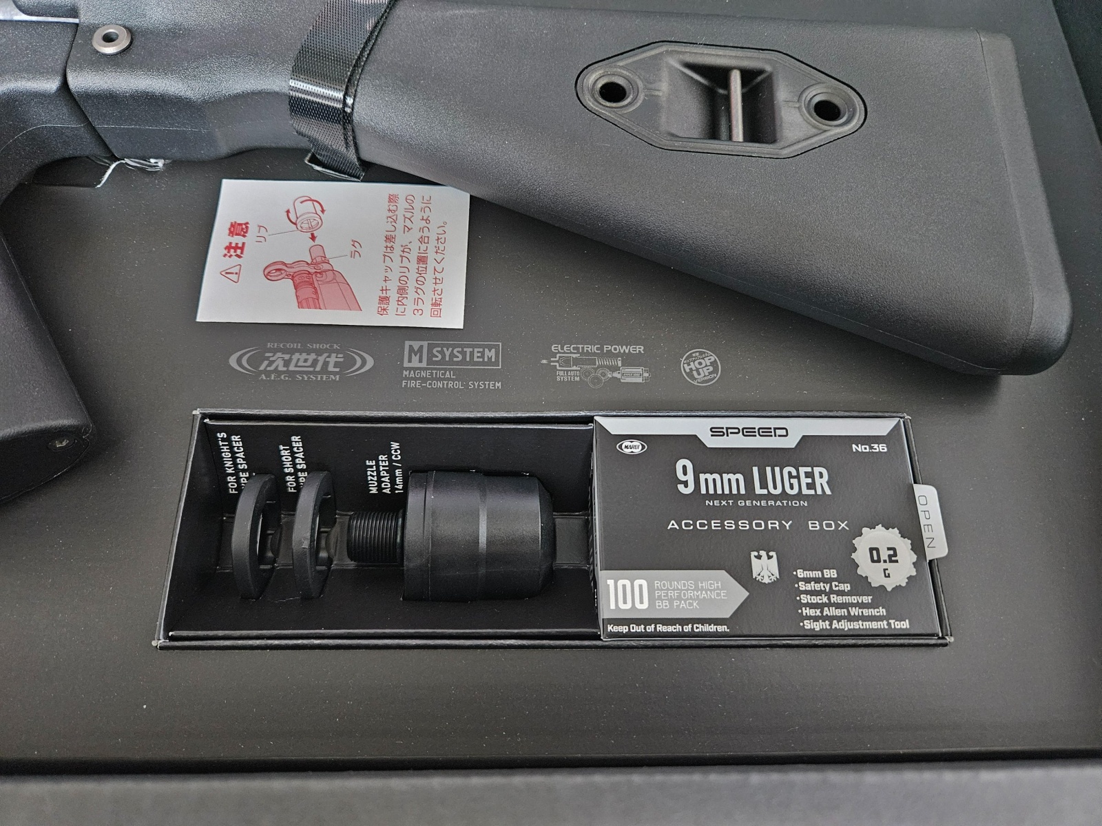 * 악세사리 박스를 열어보면 소재가 쫀득해진 총구마개가 있고 용도를 알 수 없는 부품들이 좀 보입니다