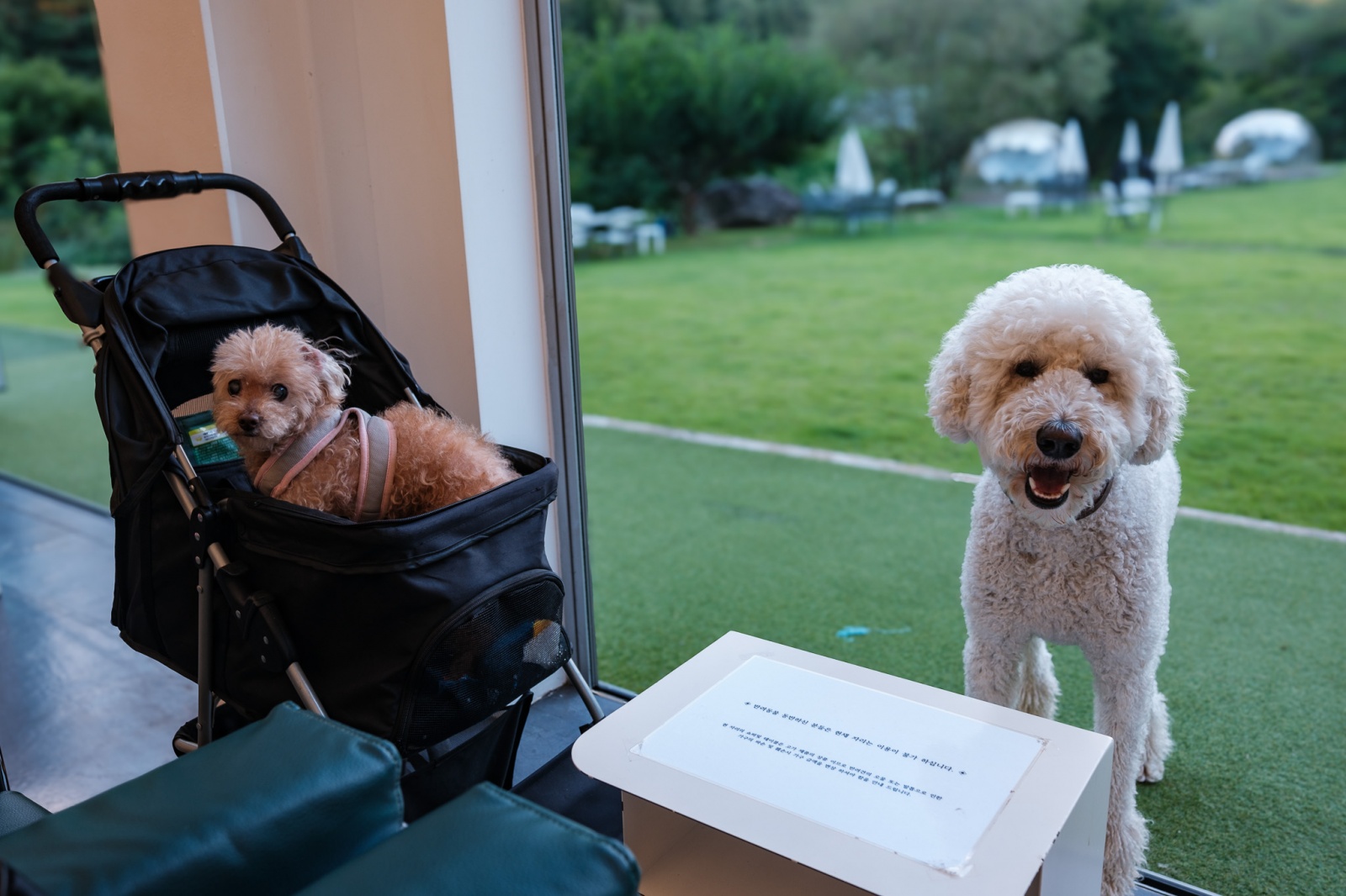 카페에 사는 푸들은 이름이 "김비서"입니다. 비서 역활을 톡톡히 하는 아주 똑똑한 친구인데 자기가 가장 좋아하는 판다 인형은 절대 빼앗기지 않습니다.