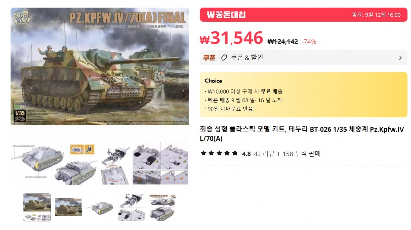 * 보더의 2차세계대전 독일 4호 70(A)형 구축전차 신제품 무배 3만원 정도고 타미야에서도 최근 신제품으로 발매했습니다