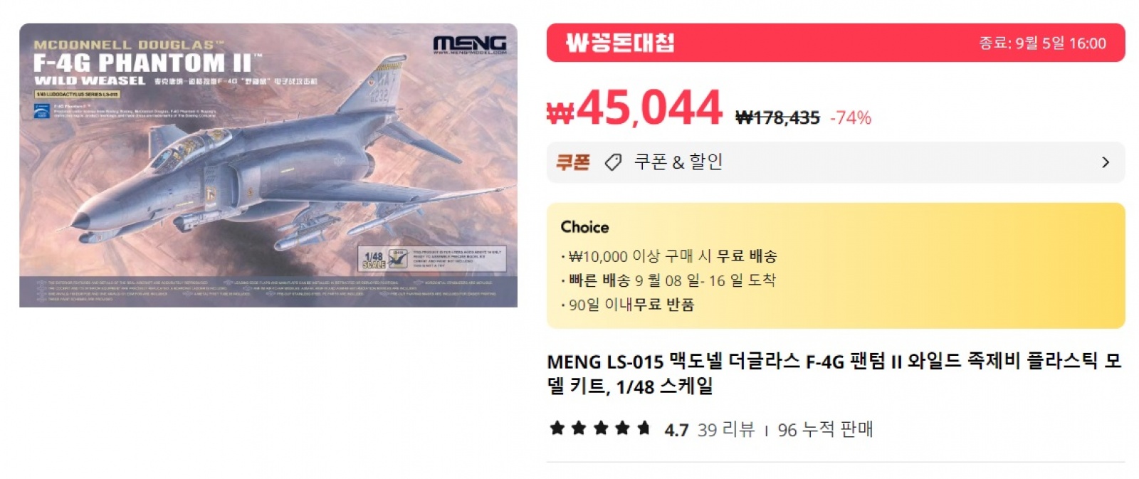 * MENG의 최근작 1/48 팬텀, 국내가 9만원 정도 합니다 그 가격대비 성능은 안 좋았고 뭐 그 키트가 3만원대라면..?