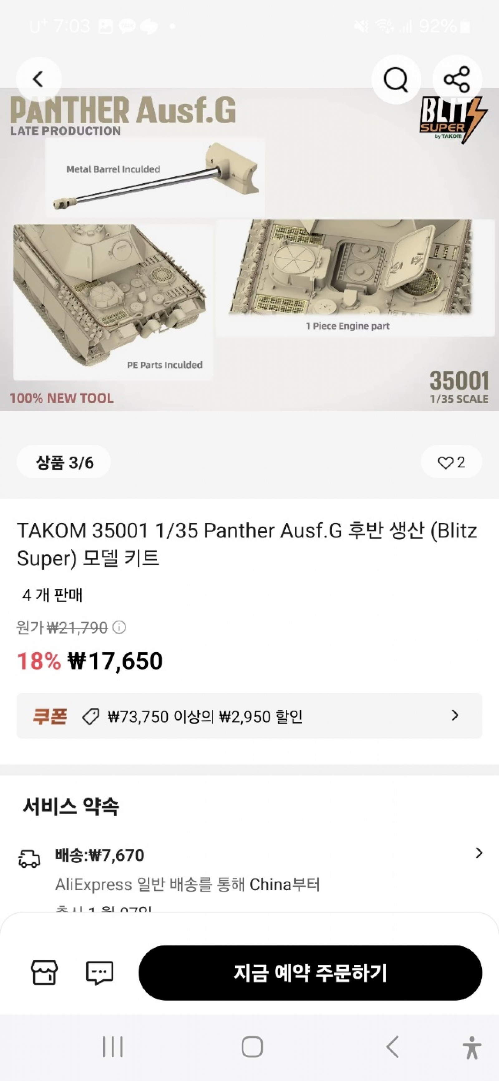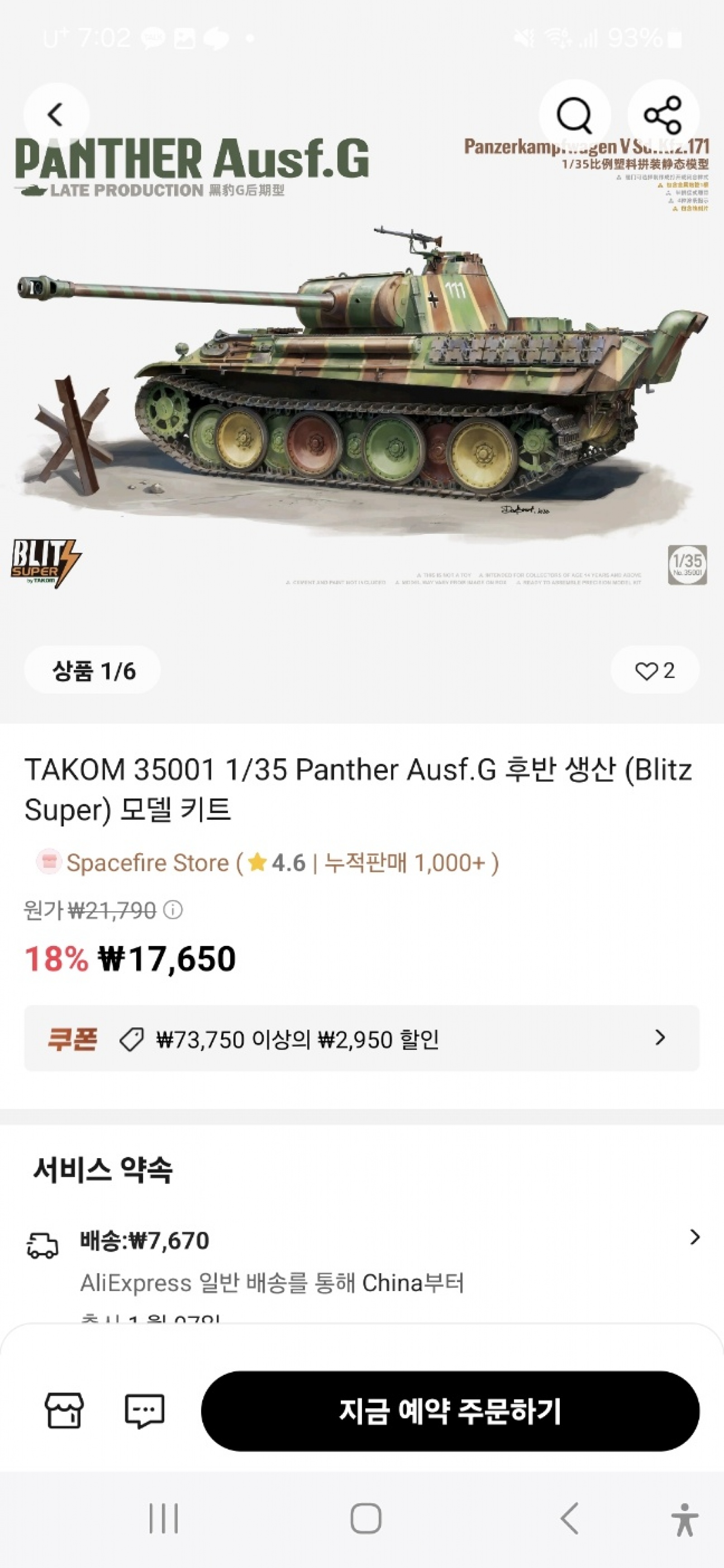 회원 여러분들 신금형 1/35 판터전차가 1.7만원? 이랍니다.. @.@