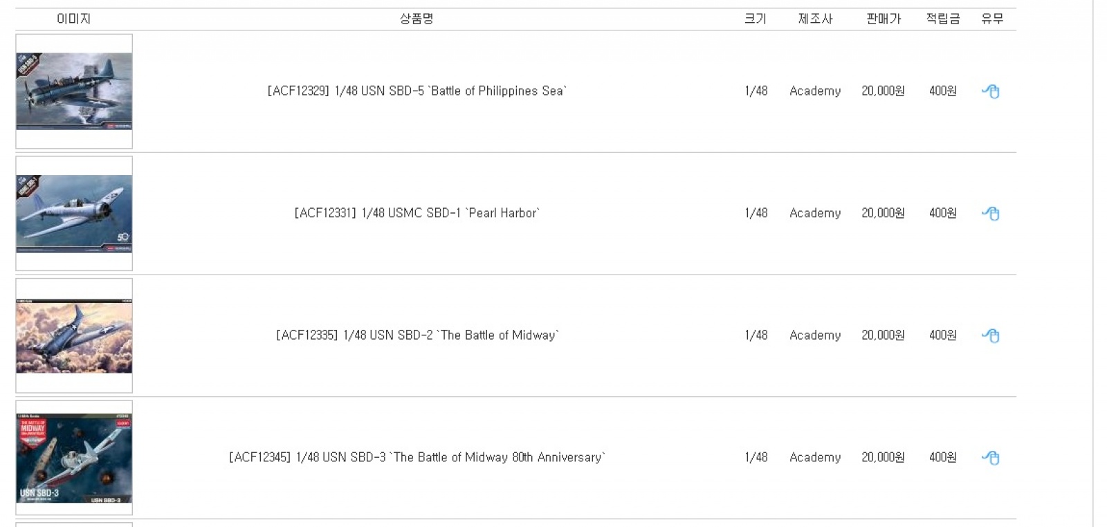 품절된 후 오히려 지름신이 내려 그렇게 찾던 아카데미 1/48 SBD 시리즈가 2월22일 현재 재입고 된 듯하네요.