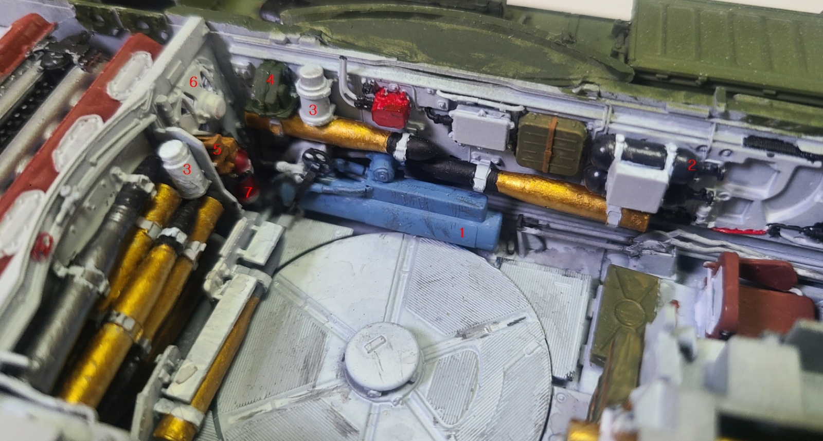 2. T-34때부터 이어져온, 압축공기통. 저 압축공기를 이용해서 시동을 거는 역할입니다. 시동기가 고장났다거나 너무 추워 얼어가지고, 작동이 안될 때 저 압축공기의 밸브를 열어서 전차 시동을 겁니다.