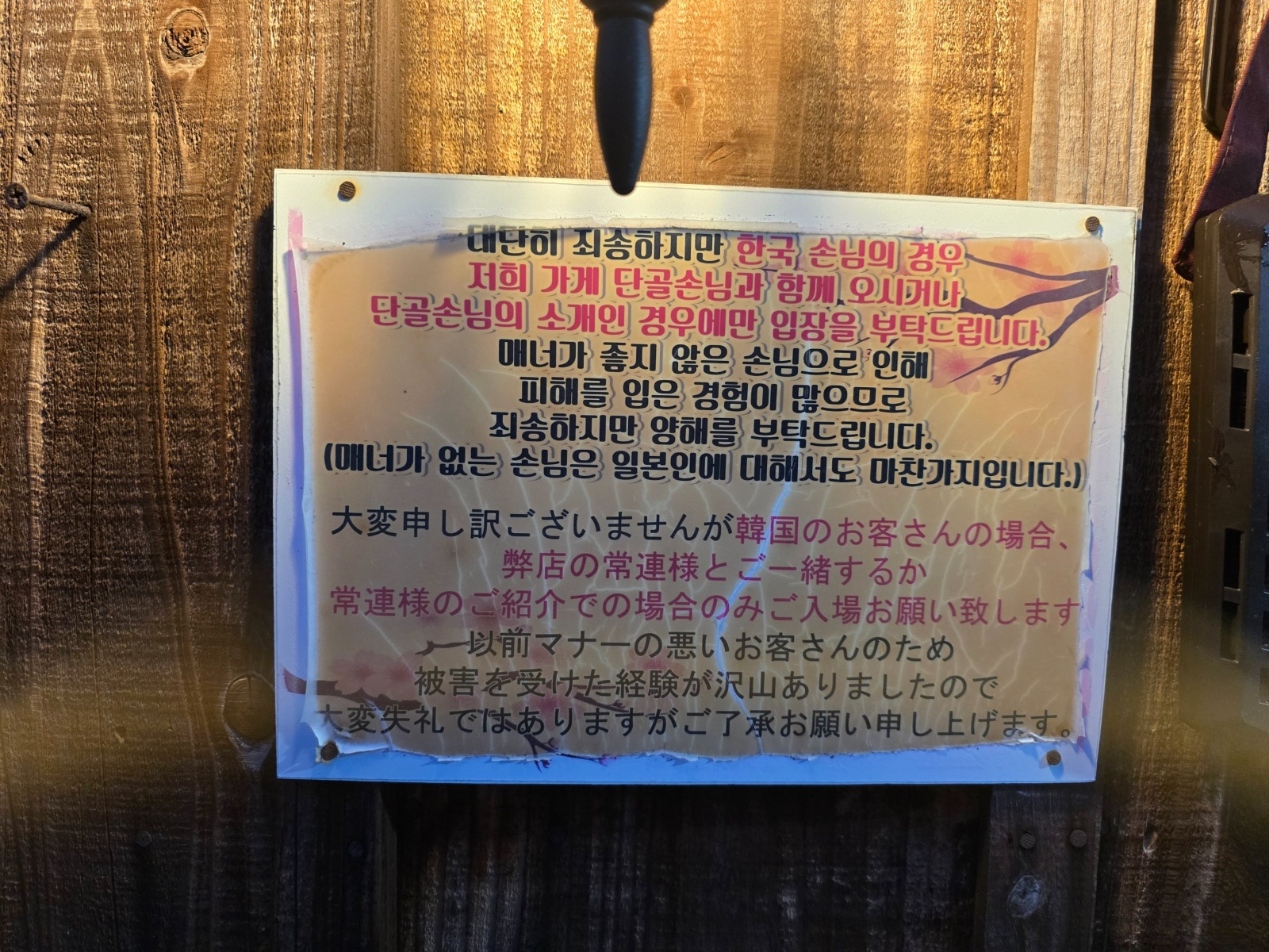 사실 이런 안내판은 고베에서도 본 적이 있습니다. 뭐 손님 가려서 받겠다면 안 들어가면 되지요. 그런데 저기 있다 보면 왜 그런지 이유를 살짝 알 것도 같습니다. 이거 보고 또 필요 이상 과몰입하는 분은 없겠죠?