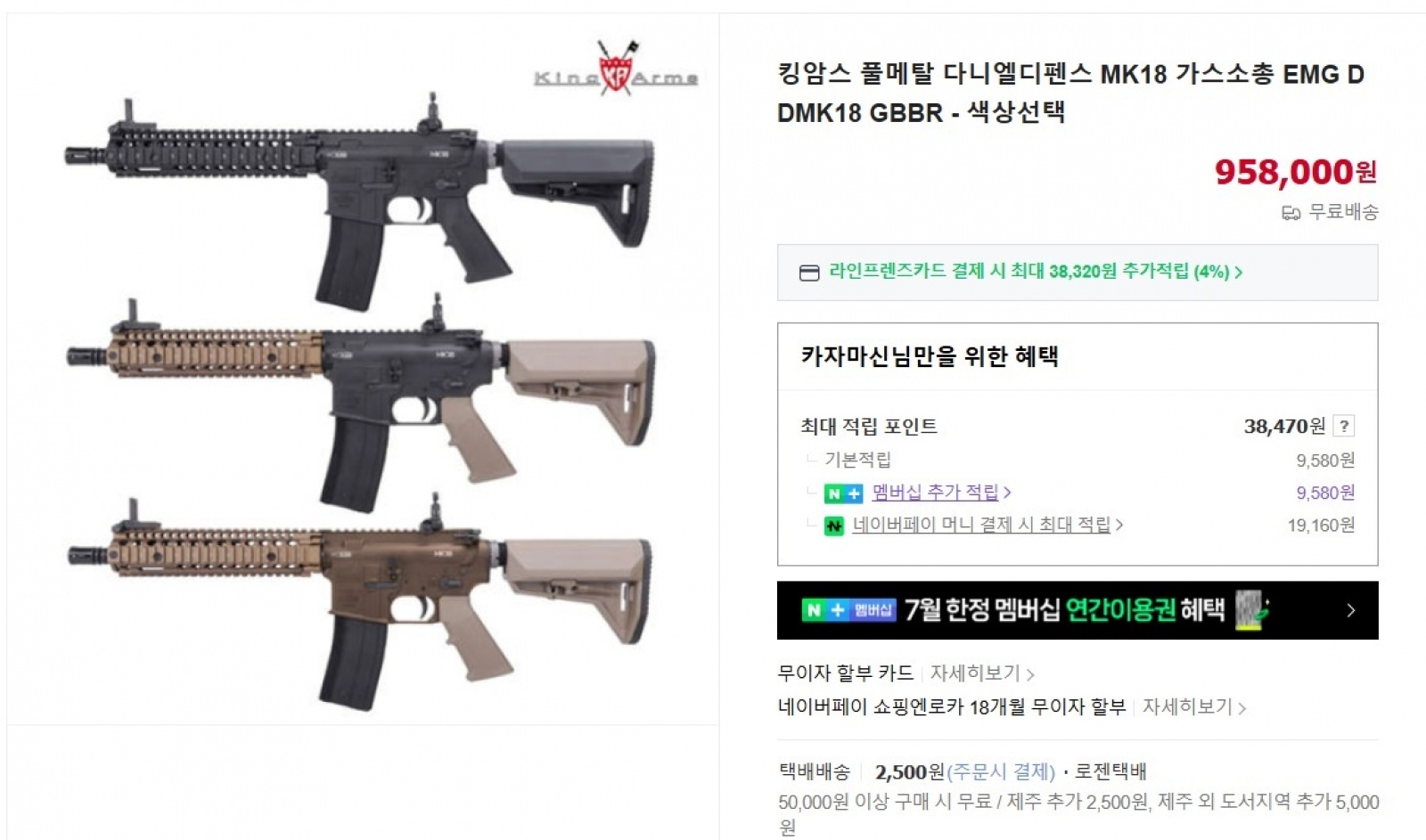 * EMG DDMK18 GBB(가스블로우백)를 아무 생각없이 서칭 후 구입하면 이 가격입니다 ㅋ