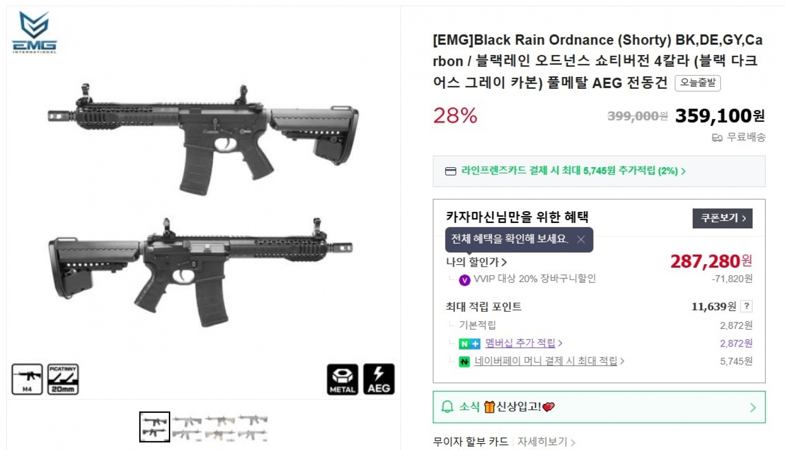 * 가격 후려치기 27만원 ㄷㄷ 아무런 할인수단을 안써도 70만원대 고급 전동건이 이 정도 가격이면 참 살만한 세상입니다 ^^