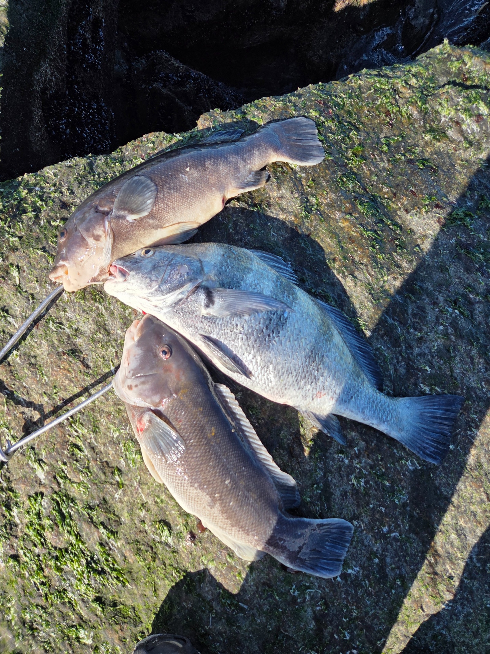 19 inch Drum fish (48cm) & 16inch tautog (40cm)한마리씩 잡았습니다.