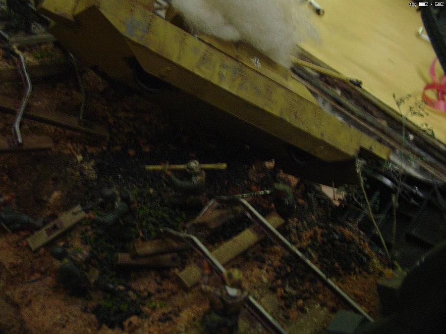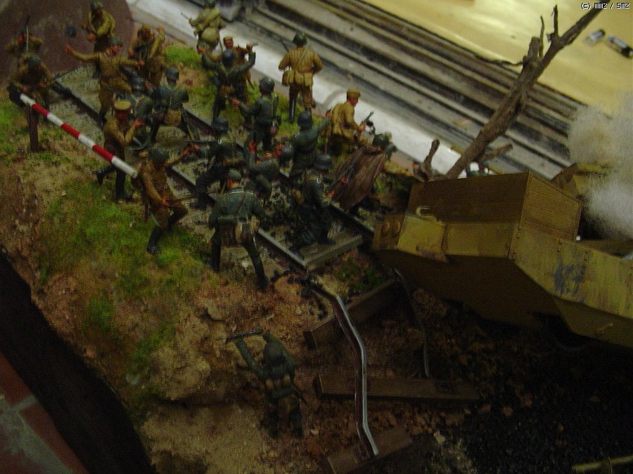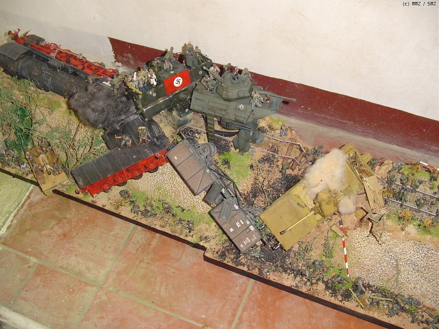 열차가 탈선한 와중에 독일이 개발한 신병기인 로보트가 나타납니다