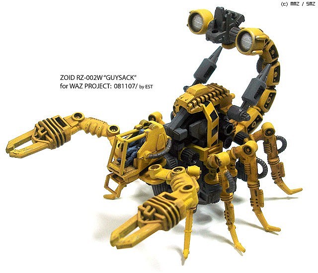 며칠 사이에 비슷한 컨셉의 작업을 또 올려서 송구스럽습니다만, 조이드 동호회 We Are Zoiders의 민간용 기체 프로젝트 마감에 맞춰서 하나 더 작업해 보았습니다. 전갈형 조이드인 '가이사크'를 일전의 '가이스파이더'처럼 공사용 느낌으로 작업해 본 것입니다.