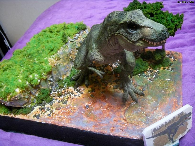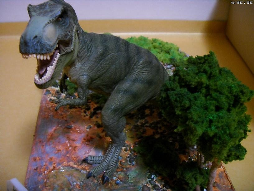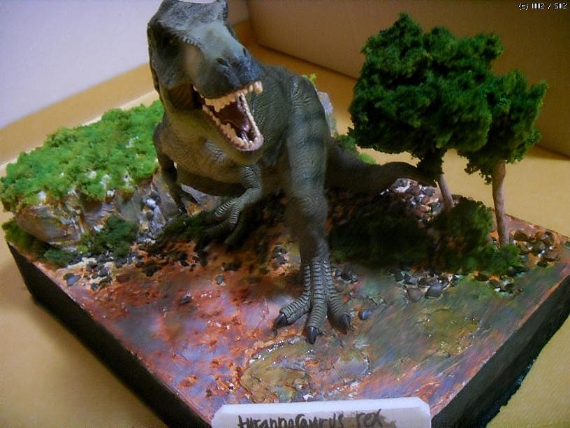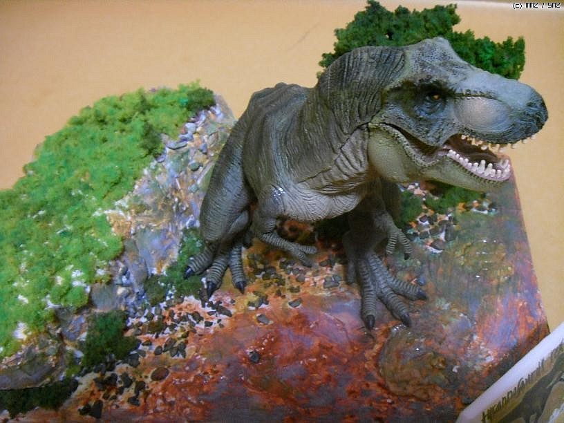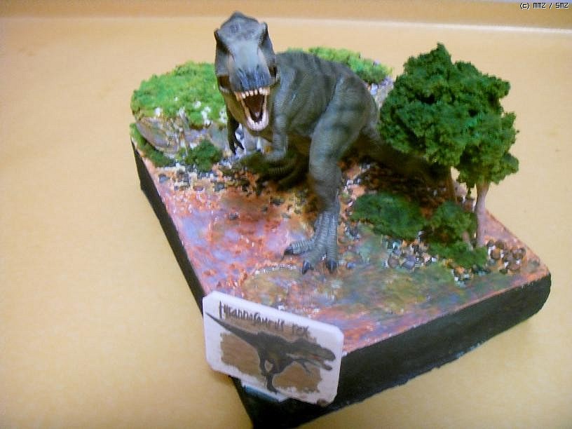 베이스 땅 색깔은 약간 선사시대를 살짝 상상해서 칠했어요, 사실 저기 발자국도 있습니다. 거기에 우드락으로 페이스트에 찍어낸 후 겔마듐을 발랐는데.. 잘안보이네요;