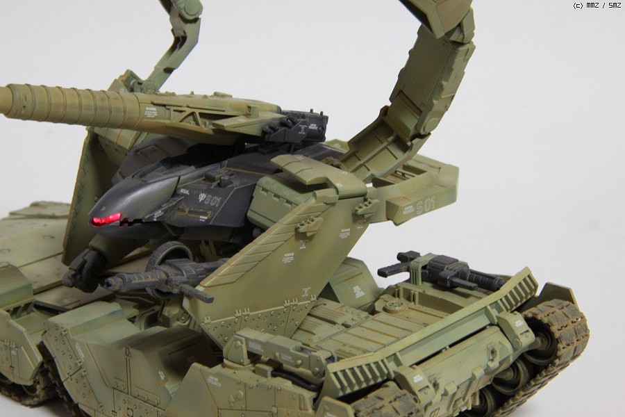 캐터필러와 궤도는 검정계열로 1차 도색하고(무슨 색이었는 지 기억이 안나네요.) 사막색으로 궤도 부분도색후에 에나멜로 캐터필러 부분을 에어브러쉬 작업한 후에 적당히 마른 후에 에나멜 신너를 에어브러쉬에 넣고 벗겨주었습니다. 그리고는 뭔가 부족해서 다시 살짝 뿌려주었는 데,,,음...동영상을 보니 역시 막 지구에 내려 전투를 시작하는 것이라 그리 흙이 많이 묻는 것도 아니고, 그리고 치핑도 할 필요가 없을 듯 싶네요. 캐터필러 부분은 조금은 벗겨내는 것이 더 좋았을 것 같습니다.