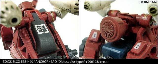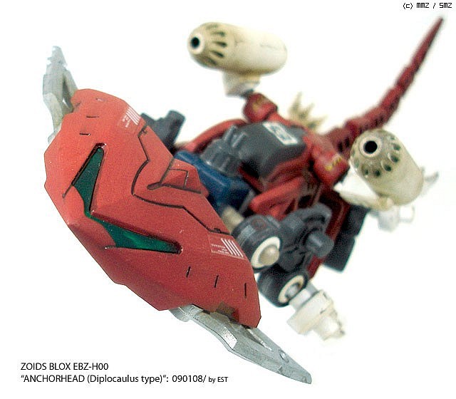 조이드 시리즈에서 디플로카울루스는 지금까지 제품화된 적이 없습니다만, 초기 블럭스 8종 BZ-007의 넘버를 차지하고 있는 '디플로건즈'에게 형태를 빌려준 적은 있습니다. 앵커헤드는 그 디플로건즈로부터 힌트를 얻어 시작한 작업입니다.