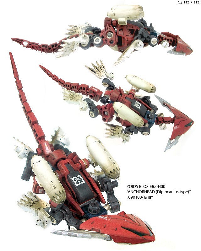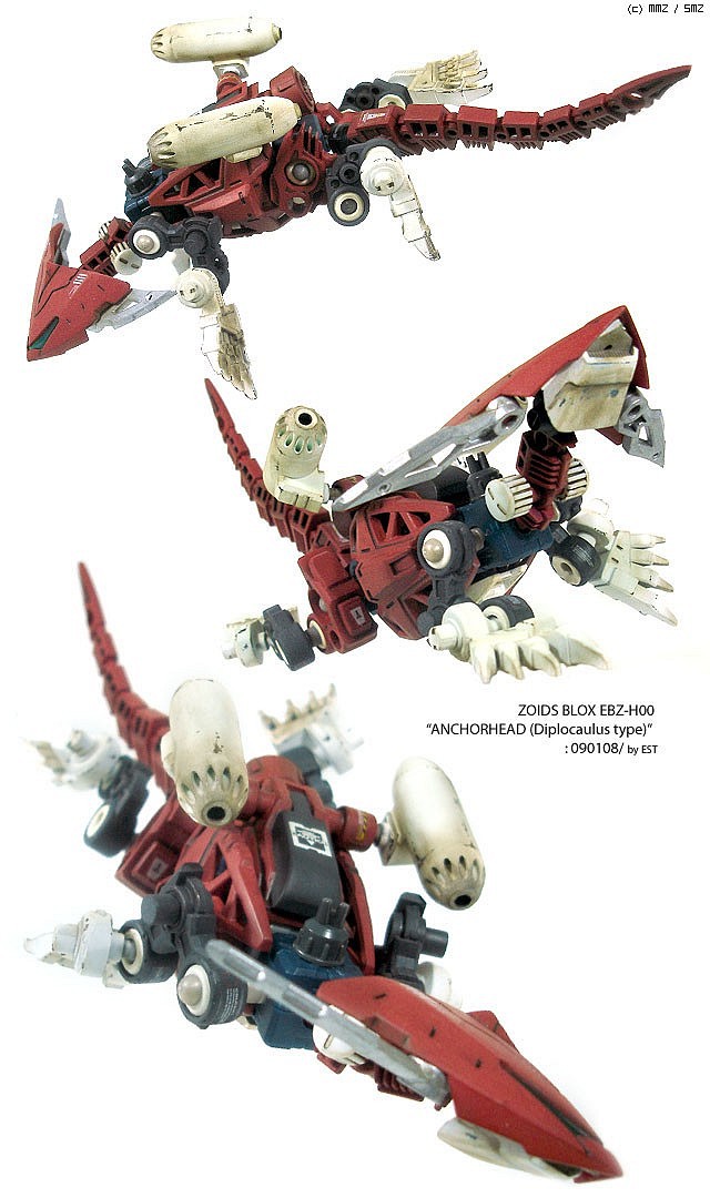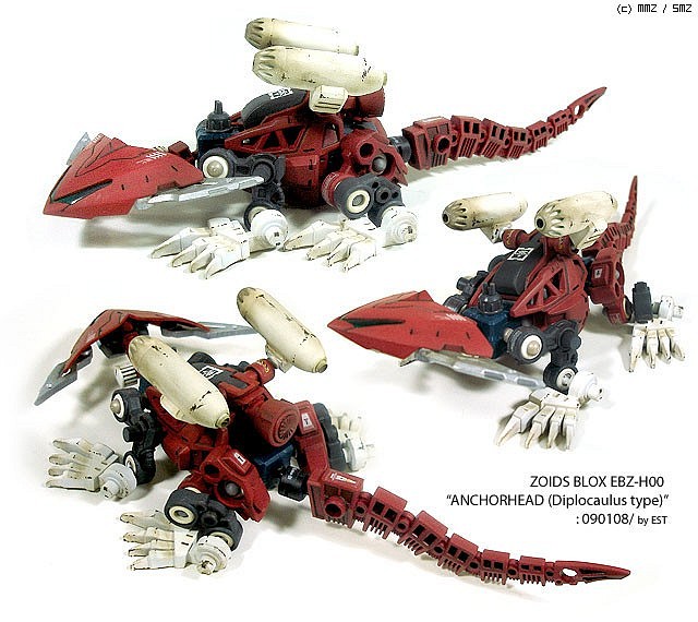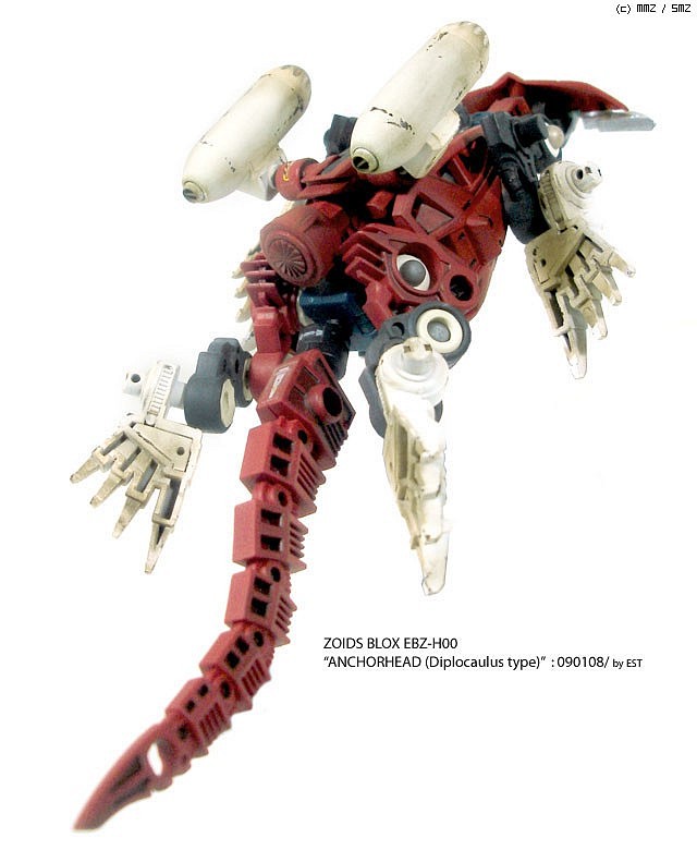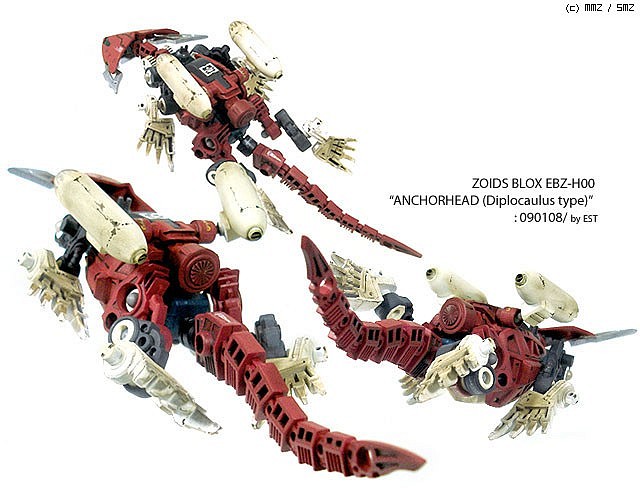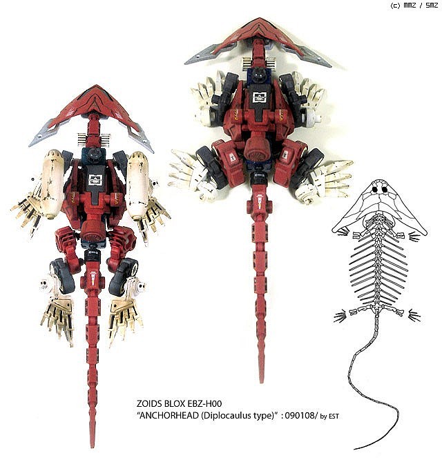 온라인 조이드 동호회인 We Are Zoiders(WAZ)의 콘테스트 출품용으로 제작한 블럭스 조이드인 '앵커헤드'입니다. 모티브가 된 동물은 페름기에 서식했던 것으로 알려진 고대 양서류인 디플로카울루스입니다. 작년쯤엔가 인터넷에 '사진'이 돌아다니면서 실재하는 동물이냐 아니냐 하는 때아닌 논란(?)을 일으켰던 적도 있지요.
