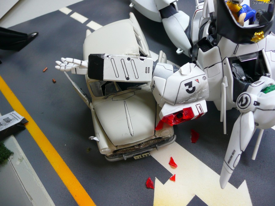2호기의 경우, 시나리오상 대파된 모습을 만들어야 하는데, 아~ 이거 너무 아까워 고민고민하다가 타협한 것이 이정도입니다. 2호기 오오타 피겨는 오리지널 파일럿과 패트레이버 command car에 부속된 피겨의 적당한부분을 붙여 탈출하는 모습을 만들어 보았습니다.