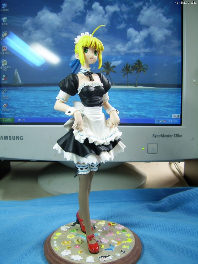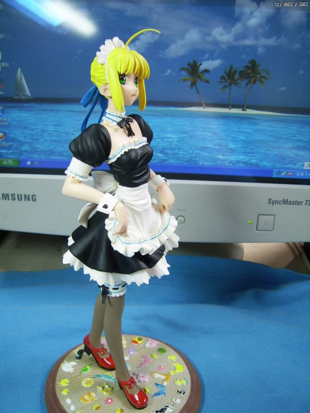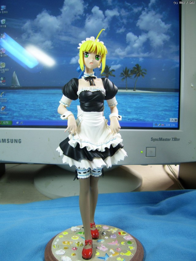 페이트/스테이 나이트의 세이버입니다. 세이버 메이드 피규어들 중에서 '대걸레 버전'이 도도하고 섹시한 멋이 있다면, 이 제품은 귀엽고 깜찍한 매력이 돋보인다고 생각합니다.