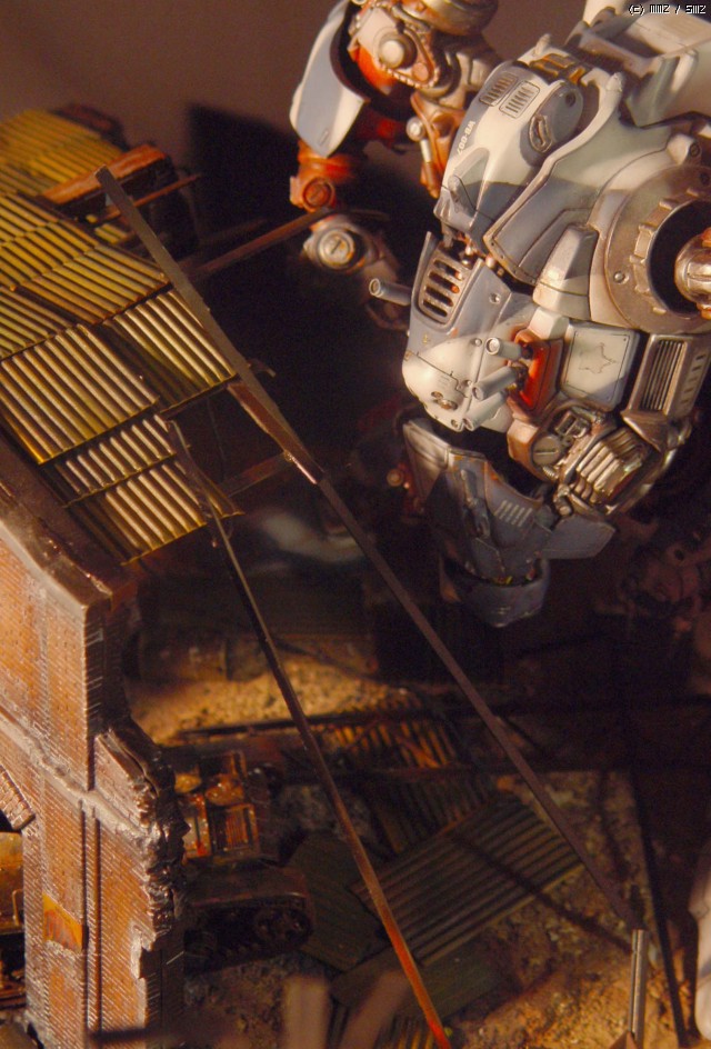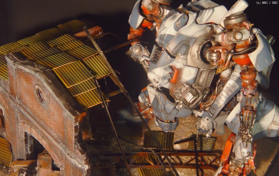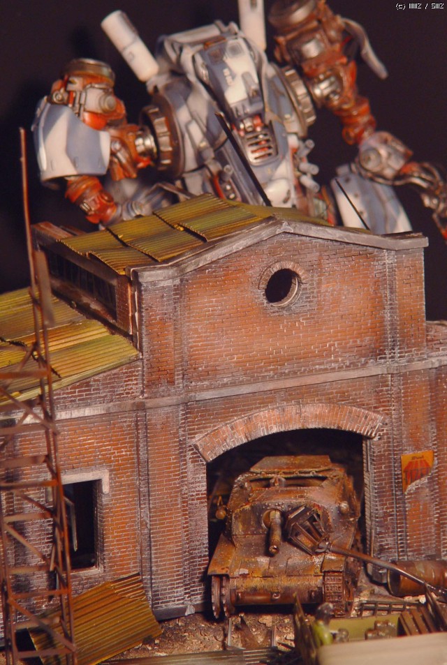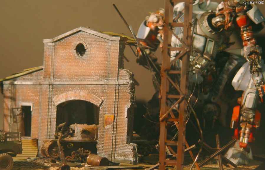 건물 :미니아트 제품,지붕은 자작 철재빔:프라판을 재단해서 만들어 주었습니다.