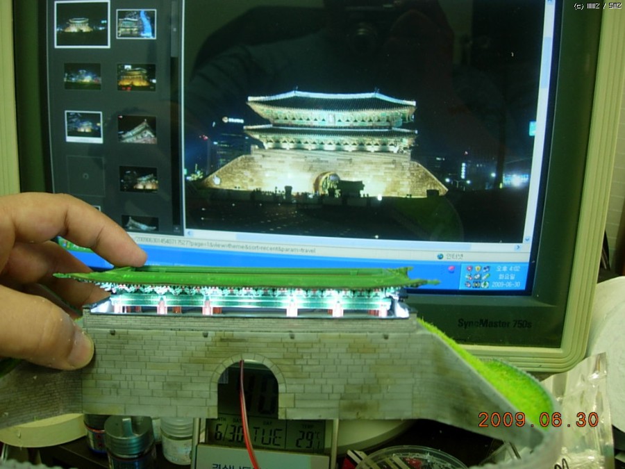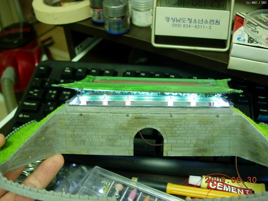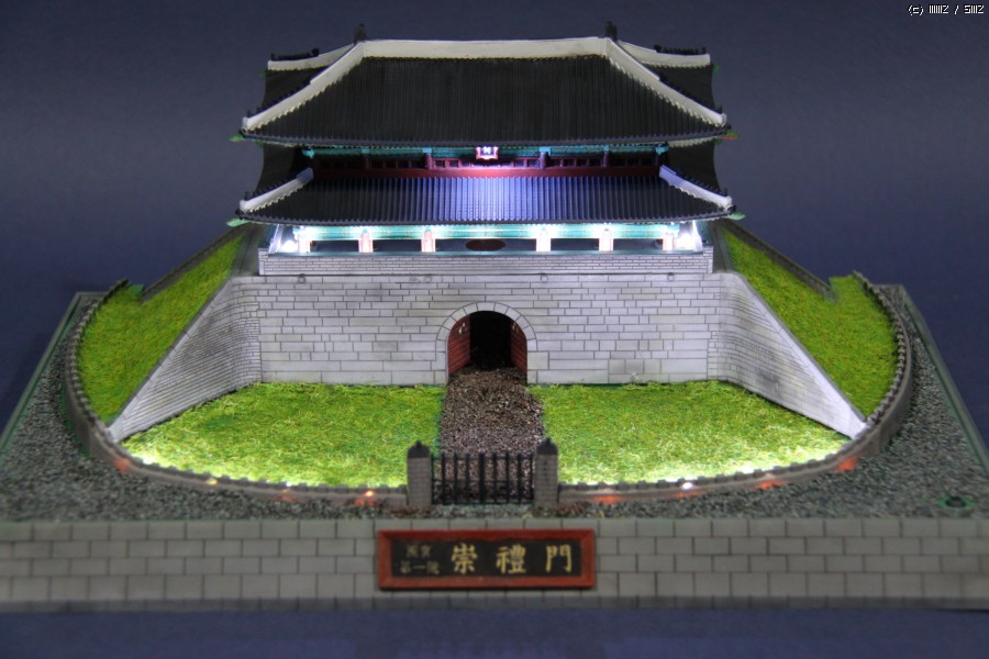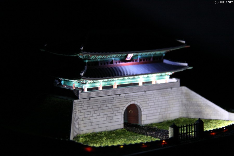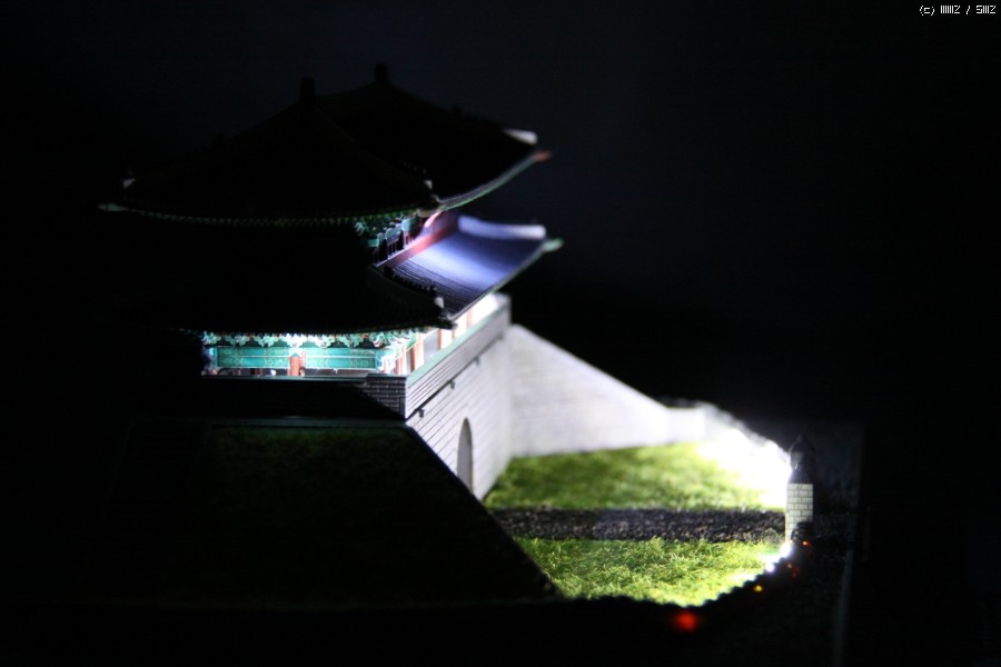 방글(유병길)님이 만든 숭례문에 약간의 웨더링, LED 작업 및 성곽주변 잡석 깔기..를 해 주었습니다.