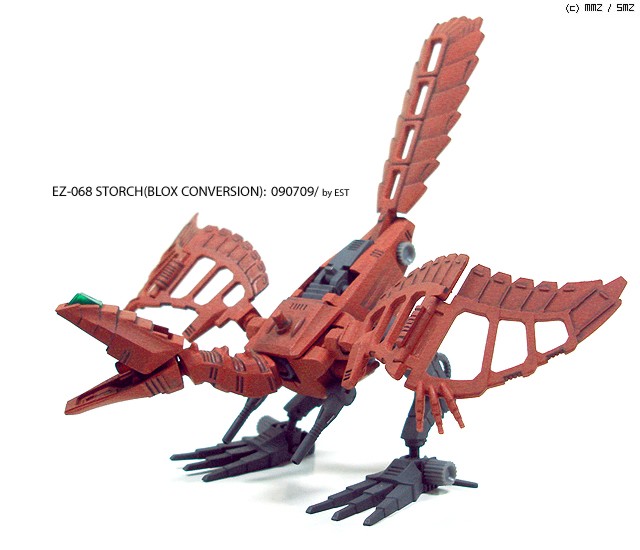 오랜만에 올려보는 조이드입니다. 온라인 조이드 동호회인 WAZ(We Are Zoiders)의 7회 콘테스트 출품용으로 제작한 비행형 조이드인 슈토르히입니다. 20여년 전인 구판 시절부터 있었던 모델이고, 2차대전 때 독일군이 사용했던 항공기의 이름을 따 왔지요. 원래 태엽으로 움직이는 제품입니다만, 늘 하던 것처럼 가동 구조를 들어내고 다양한 포징이 가능하게끔 가동형으로 개조했습니다.