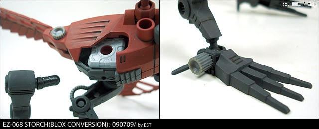 날개는 물론 목 또한 블럭스 조인트로 가동 및 탈부착이 가능해졌습니다. 암 조인트는 네오 블럭스의 남는 부품을 주로 쓰는 편인데, 고정만 잘 해 주면 흐느적거리지도 않고 아주 좋습니다.