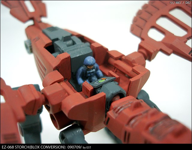 이번 개조에 있어서 최대의 포인트라 할 수 있는 콕핏의 이동. 원래 머리에 위치한 콕핏을 등 쪽으로 이동시킨 대신 '입'을 살려내서 한층 표정을 풍부하게 만들고 싶었습니다. 조야하나마 계기판도 만들고 싶어서 데칼용지에 출력한 걸 사용했는데, 알록달록한 게 그리 마음에 들진 않는군요. 나중에 사정이 허락될 때 좀 중후해 보이는 쪽으로 수정해 볼 생각입니다.