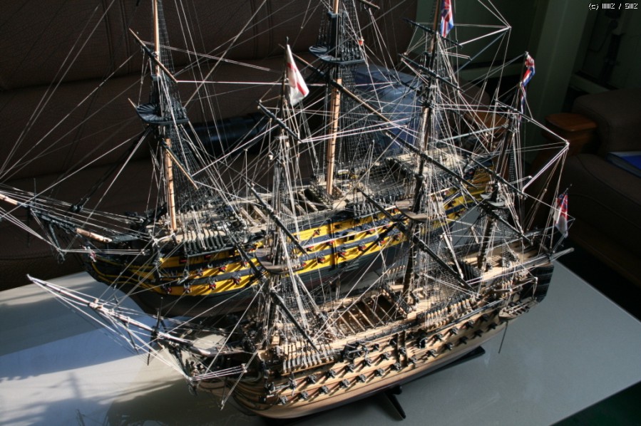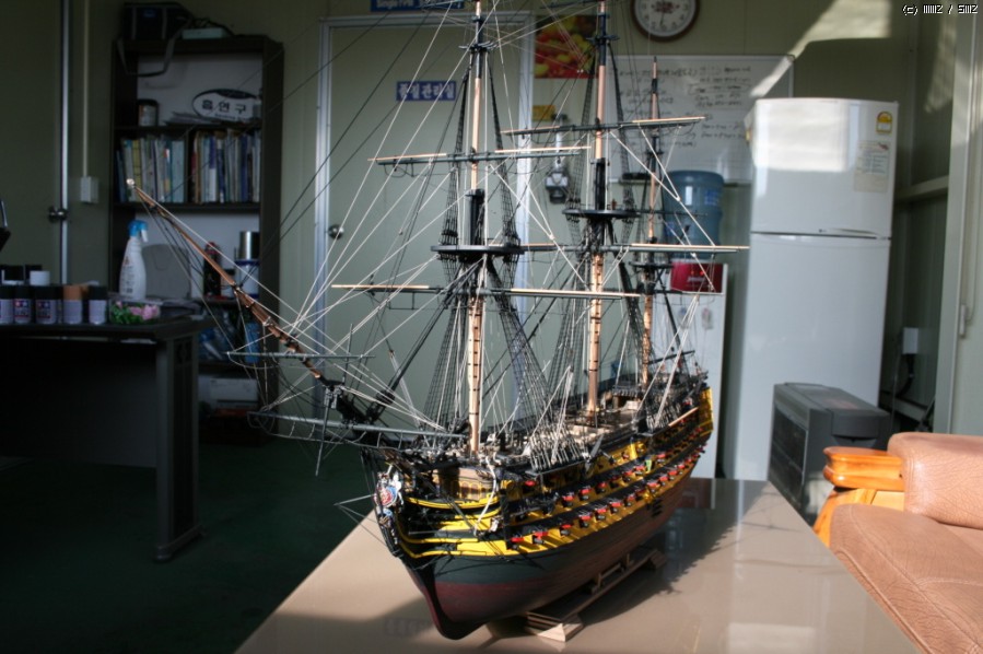 목범선 제작과정이 궁금하실것 같아서 올립니다. 영국 넬슨제독의 1급 전열함 HMS VICTORY 입니다. 1/78모델로 세갈 기본키트에 자작을 병행하였으며 80여장의 도면과 참고자료 실선사진을 바탕으로 제작하였습니다. 미터급 범선으로 1300MM 축소 모형입니다!~~제작기간은 하루 4시간 기준으로 1년 6개월이 소요되었습니다!~~현재 실선이 복원되어 영국 포츠머스항에 정박 전시중이며 내국인과 외국 관광객의 사랑을 받고 있습니다!~~사진을 정리한다했는데 좀 순서가 바뀐것도 있습니다!^^* 빅토리호는 영국 함대 사령관 넬슨 제독의 1805 년 프랑스와의 트라팔카 해전으로 너무나 유명한 배이다. 1777 년 착공 8 년만에 건조되어 길이 56m, 폭 16m, 용골길이 46m, 42파운드 함포 30문외 기타 80문을 갖춘 18 세기 당대의 전형적인 3 층갑판의 1 급 전함이다.