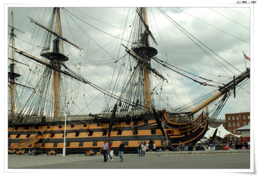 1797년 2월 Jervis 제독의 기함으로서 다른 14 척의 전함과 함께 센트 빈센트 해역에서 에스파니아 함대 27척과의 해전에서 그 이름을 날렸으며, 1803년 6월 16일 넬슨 제독의 기함으로서 전 유럽을 석권하고 영국을 넘보던 프랑스의 나폴레옹을 견제하기 위해 지중해에 파견, 1805년 10월 21일 나폴리로 회항할 려는 프랑스,에스파니아 연합함대 33 척과 트라팔가 해역에서 조우,이때 넬슨은 27 척의 전함을 이끌고 격렬한 전투끝에 대 승리를 거둔 바 있다.