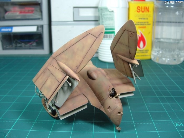작중에서도 윙폴딩 상태로 주기되어 있기 때문에 한번 날개를 접어봤습니다. 디테일은 적당히해서...