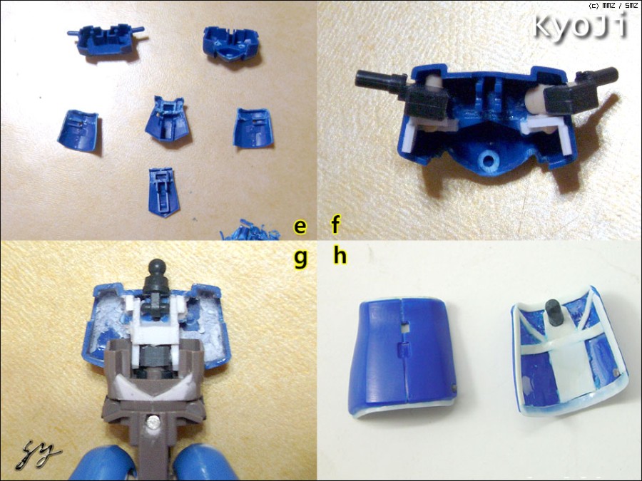 왼손의 기관포 손가락은 가동식으로는 못하고 대신 마디를 모두 잘라 살짝 모습만 바꾸어 보았습니다. 아무래도 뻣벘한 상태 보다는 나아보이는 것 같습니다. 손끝에는 1.5mm 메탈 파이프로 디테일을 주었습니다. 원래 짙은 회색으로 도색해 주려고 했는데 뭔가 포인트로 남겨 놓고 싶더군요.