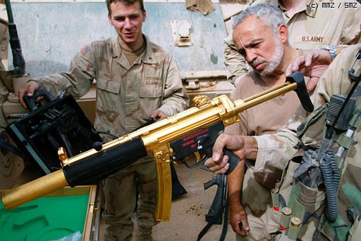 보톰스는 투톤입니다. 이라크에서 노획한 후세인의 황금기관총을 보고, 보톰스 럭셔리 에디션