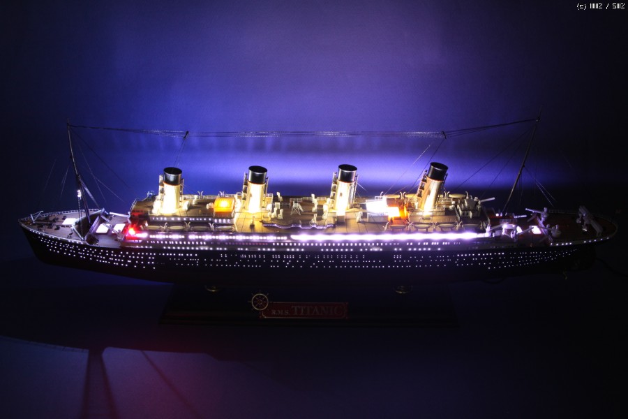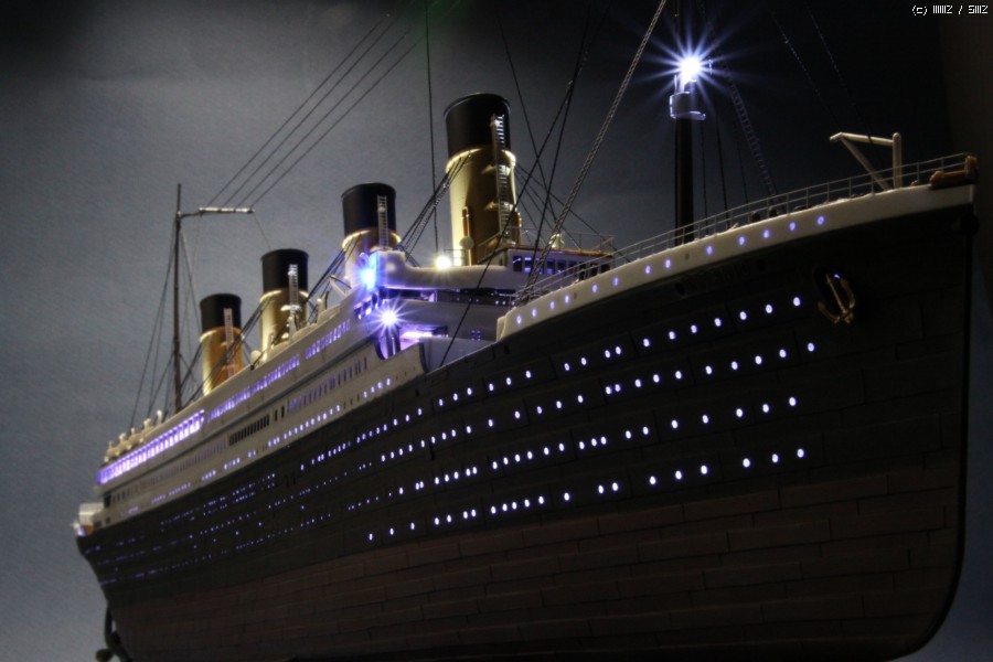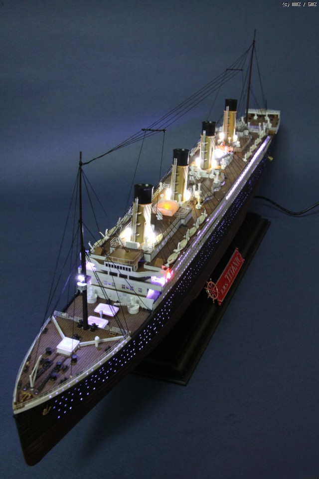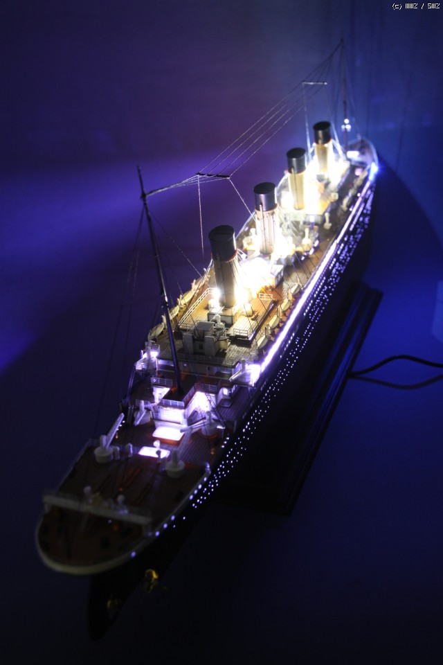 LED작업 의뢰작이며, 의뢰인께 전달 전 몇컷 올립니다. LED 타이타닉은 다소 많은 분들이 작업하신 아이템 입니다만, 차별화 포인트로써,조명의 사실감을 증대코자 백색 선체 내부를 검은색 락카로 차폐하는 우(!!?)를 범하야, 빛 투과율이 0 가 되어, LED 사용량이 무척이나 늘어난 작 입니다..