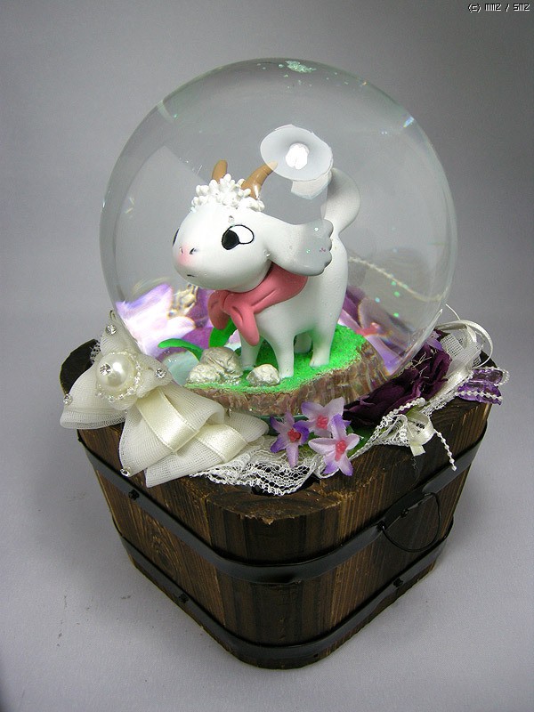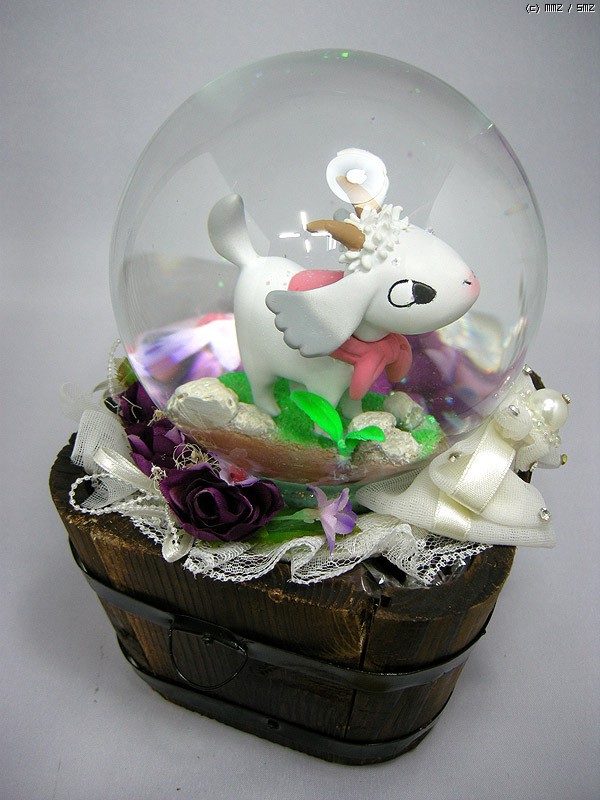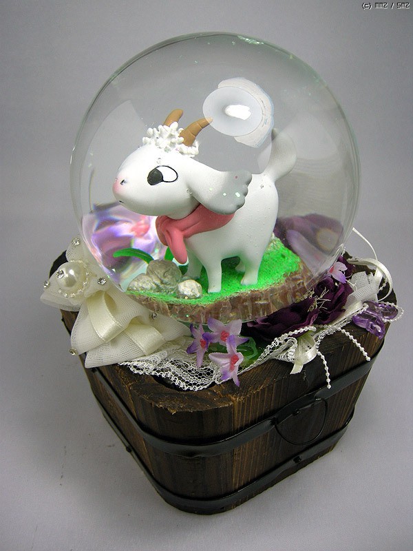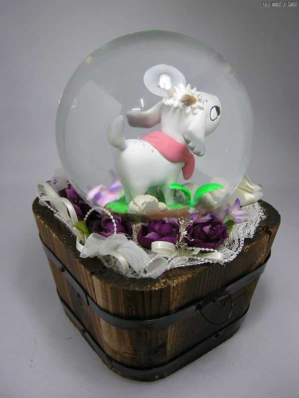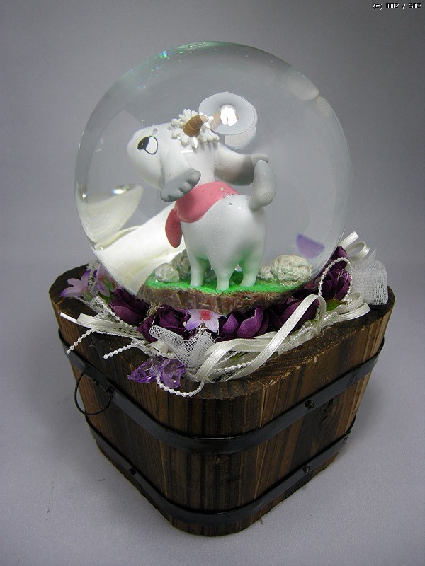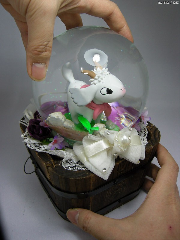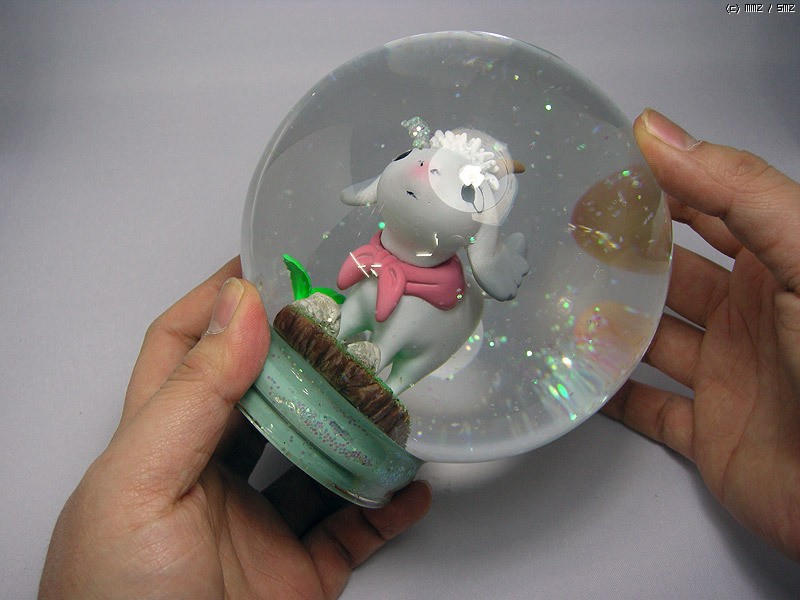 저 유리구를 거꾸로 들었다가 내려 놓으면 반짝이가 둥둥 떠다닙니다.
