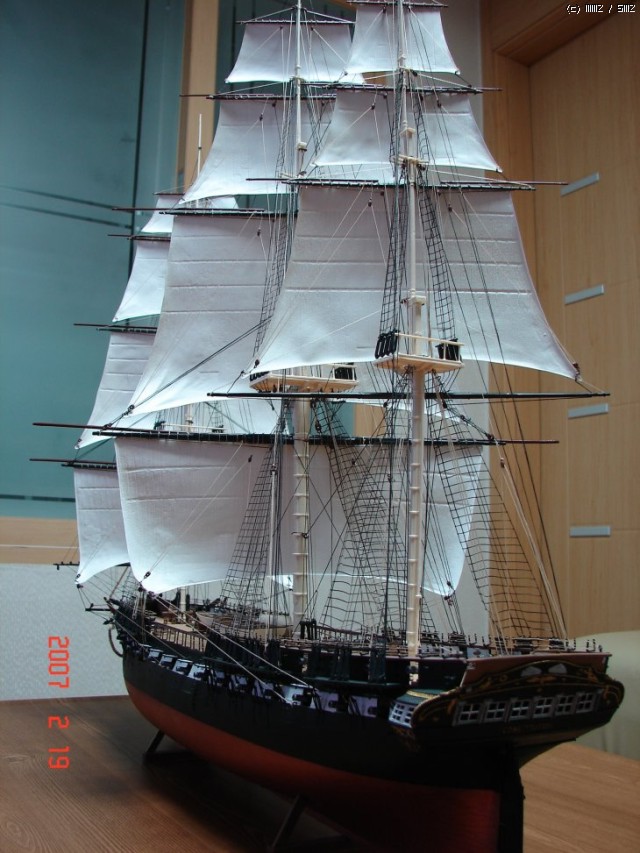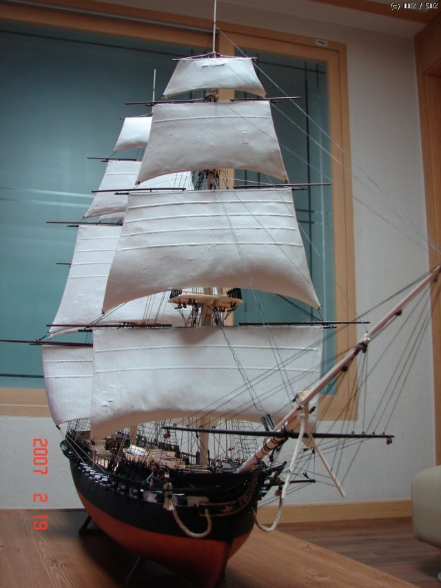 선물용으로 만든것입니다. 한 2년전? 인것 같습니다. 금형이 오래된 것이라고 들었는데, 선체와 상갑판의 틈이 많이 벌어지는것 말고는 그리 힘들지는 않은것 같았습니다.(조립은...) 역시나 범선은 리깅이 힘들더군요. 목범선 만든시는 분들을 존경하게 되었습니다.
