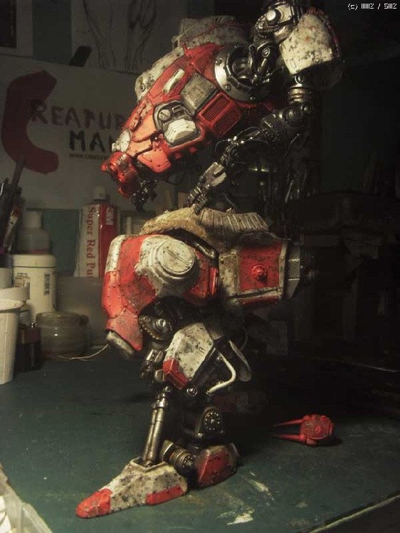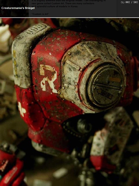 저도 문명이 사라진후라는 소설을 쓰고 모형도 만들며 잡지에 기고도 했던 사람이지만 로봇에 대한 로망이 아직 식지 않은 모양인지 정말 충격적인 작품이었습니다. 기계로 찍어낸 손맛이 느껴지는 작품 그것은 제가 추구하는 크리어쳐모델링의 기본 개념이어서 더욱 놀라웠던 작품이었습니다.이걸 만든 원작자는 이탈리아 사람이라고 하더군요