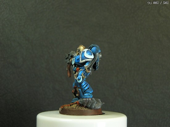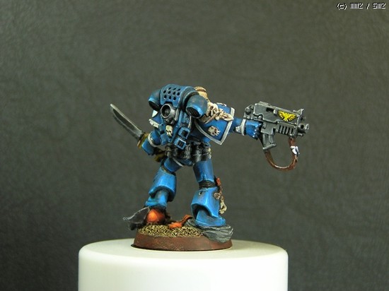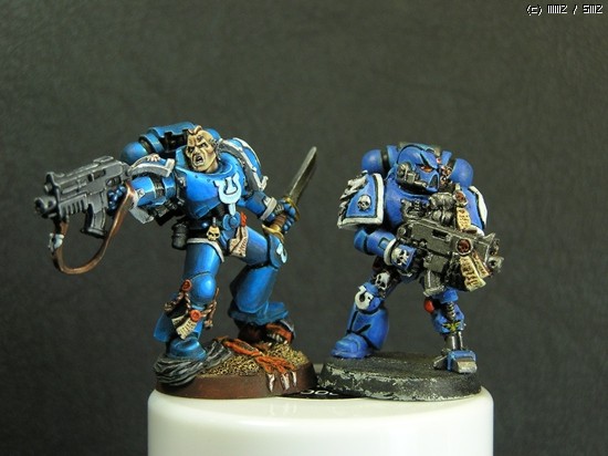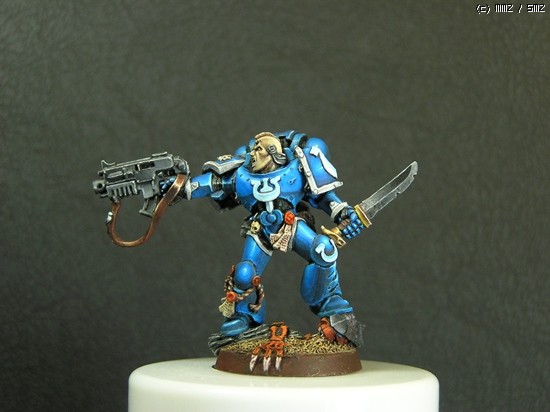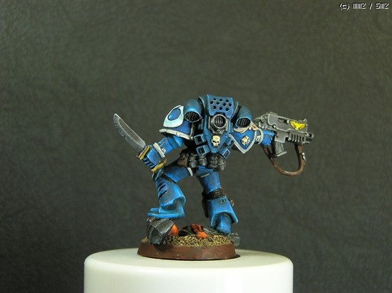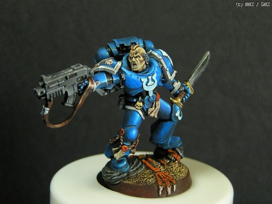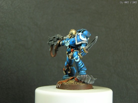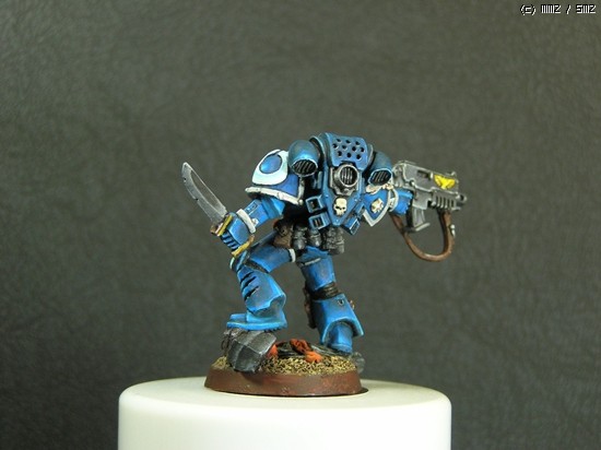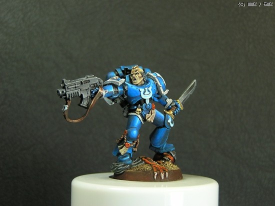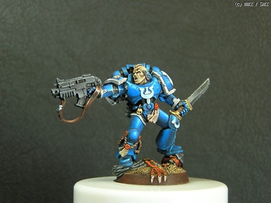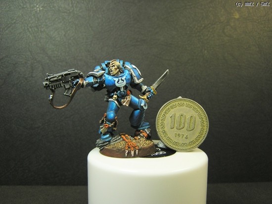 이번에 거의 일주일간 칠한 스페이스마린입니다. 울트라마린 챕터의 마린이라 파란색입니다..^^ 도색하는 방법을 바꿔봤는데 첨이라 힘들기만 했네요..ㅜㅡ 얘네들은 타이라니드 헌터라고, 저그랑 이미지가 비슷한 워해머 세계의 괴수들을 잡는데 특화된 병종입니다..