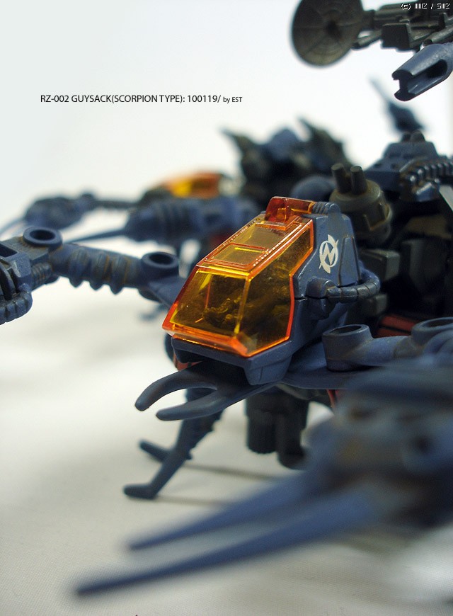 극초기 조이드라 불리는 제품군이 2회전에 접어들면서, 중후한 사출색에 각종 병기를 붙인 스타일로 전환하며 초기 조이드의 외형적 특성이 자리를 잡기 시작할 무렵의 조이드입니다. 가이삭은 콕핏과 무장 등의 교체로 중장형/일반형 사양으로 선택 조립이 가능합니다. 이건 중장 사양.