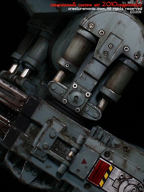 제품의 일부분을 개조를 해 주었는데 이는 영화속 더미와 다른 부분이 있어서 그렇게 수정 하였습니다. 수정된 부분은 발 뒷부분의 안쪽 비어 있는고과 머리 부분의 카울부분 허리부분의 고무부품의 디자인을 다시 수정하였고 발 부분의 피스톤 부분도 스텐느낌으로 수정해 주었습니다.
