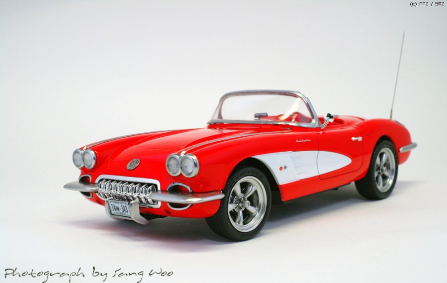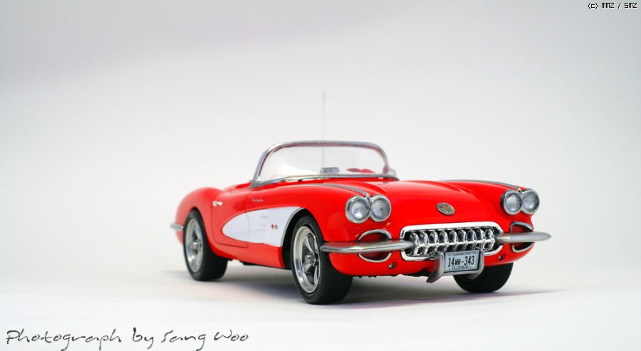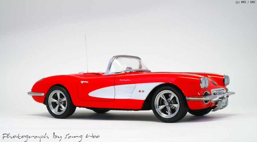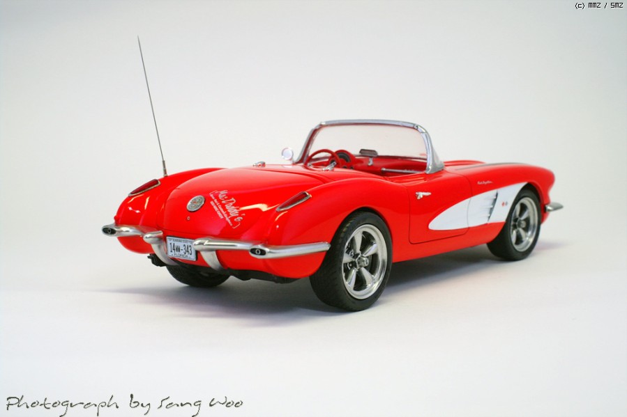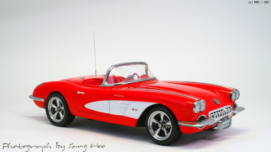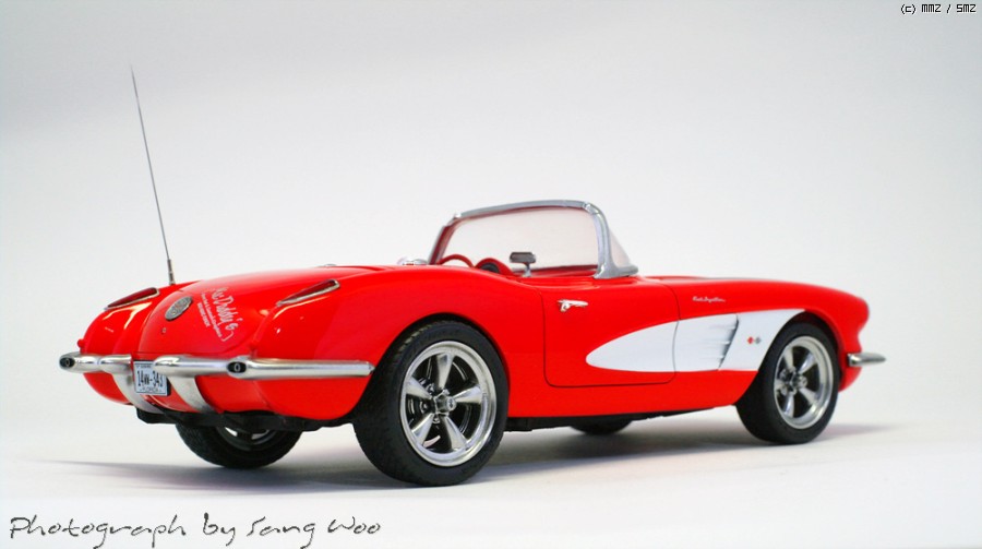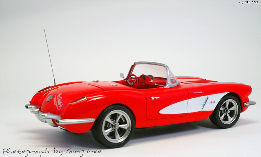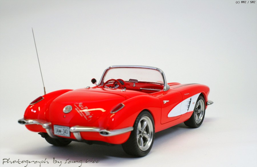 모노그램의 59년형 콜벳입니다....바디색은 피니셔스 브라이트레드이고 마감제는 군제 슈퍼클리어 3를 사용하였습니다.