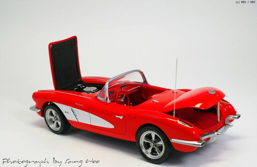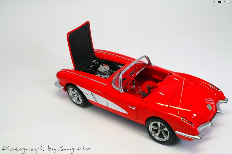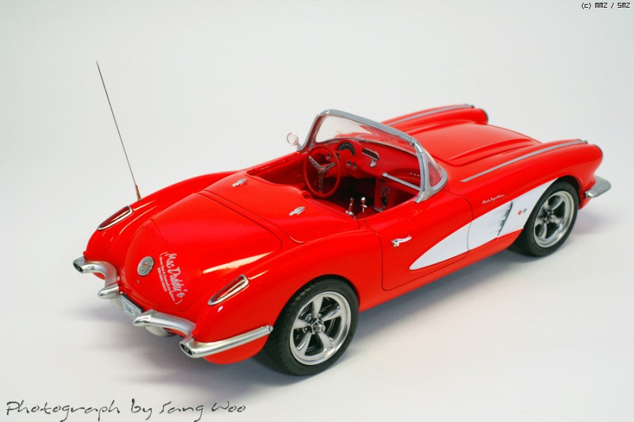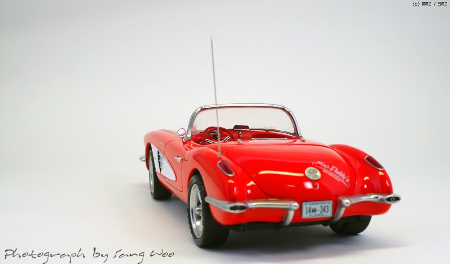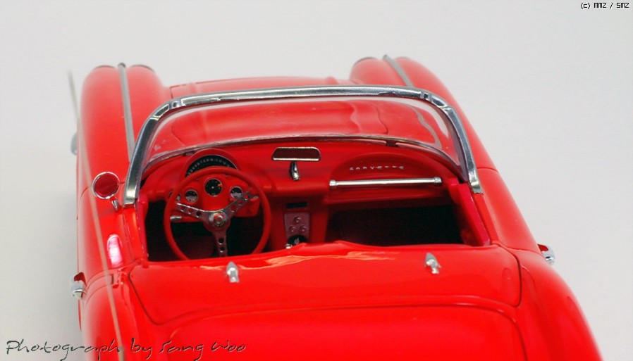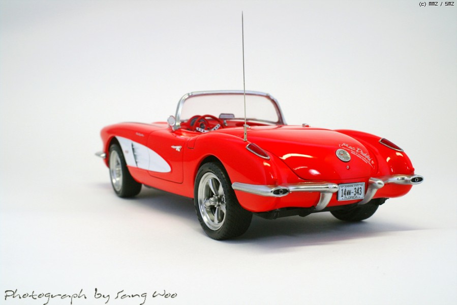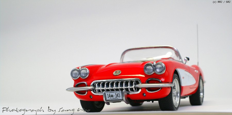 모노그램의 59년형 콜벳입니다....바디색은 피니셔스 브라이트레드이고 마감제는 군제 슈퍼클리어 3를 사용하였습니다.