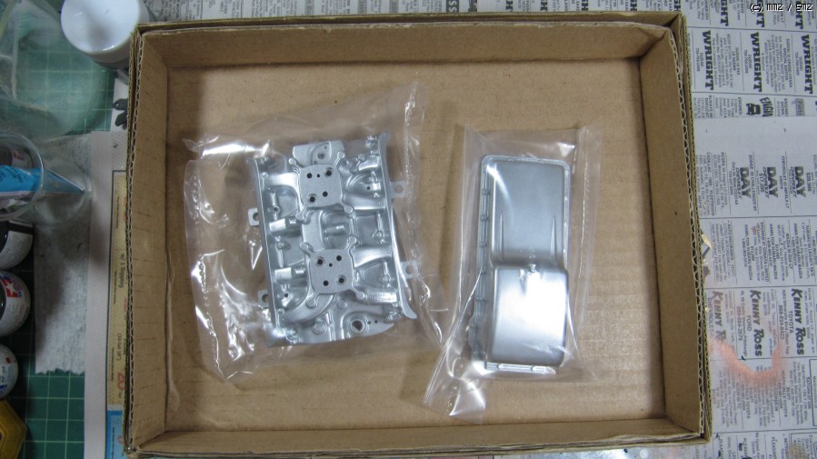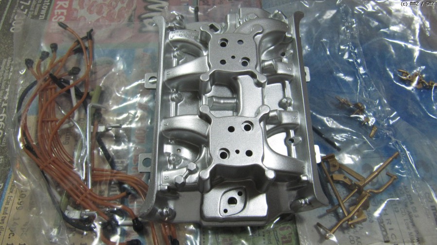 이제 흡기다기관을 얹습니다. 흡기다기관에는 Firing Order 까지 양각되어 있습니다. 진짜 엔진을 충실히 재현.